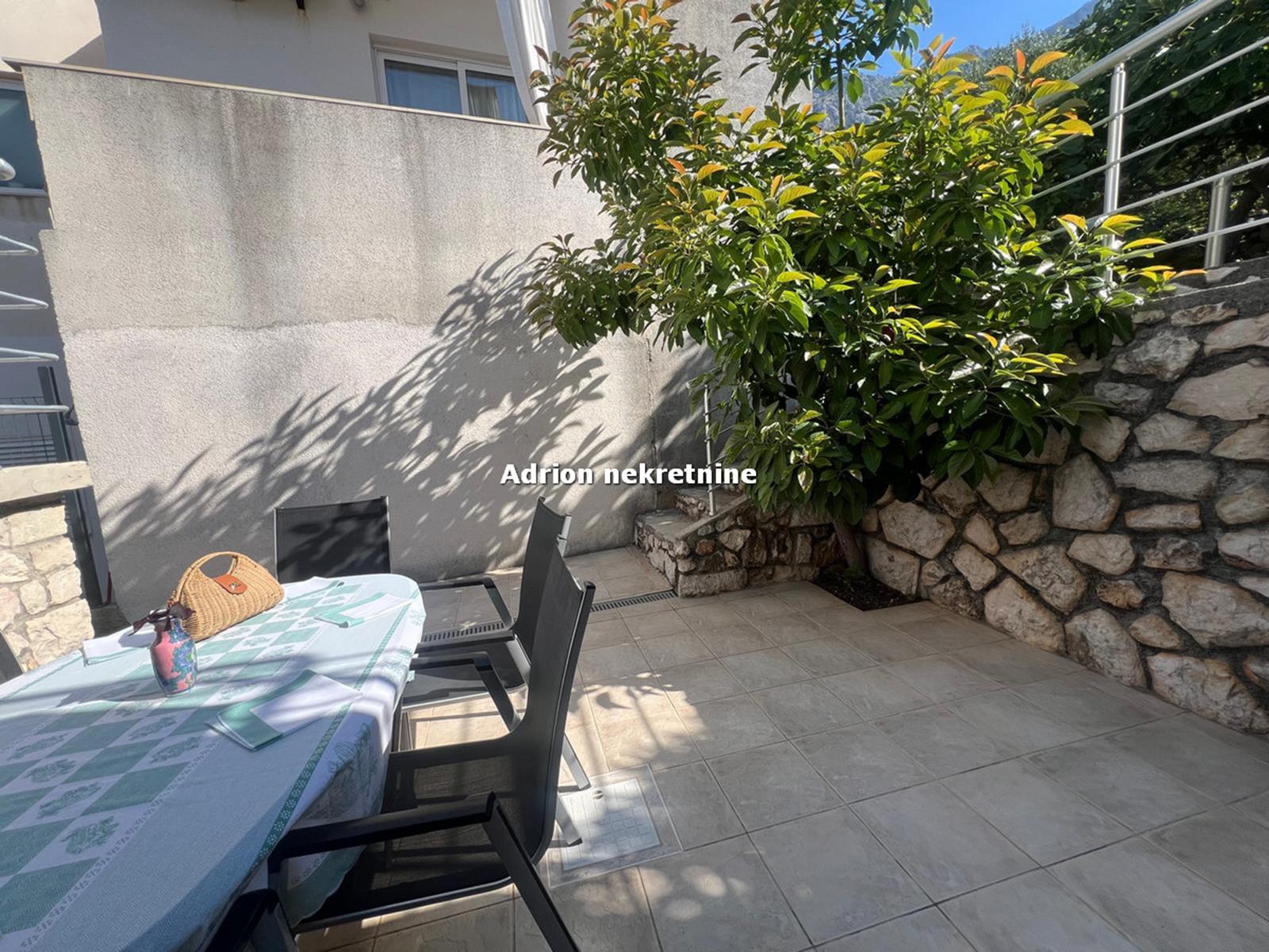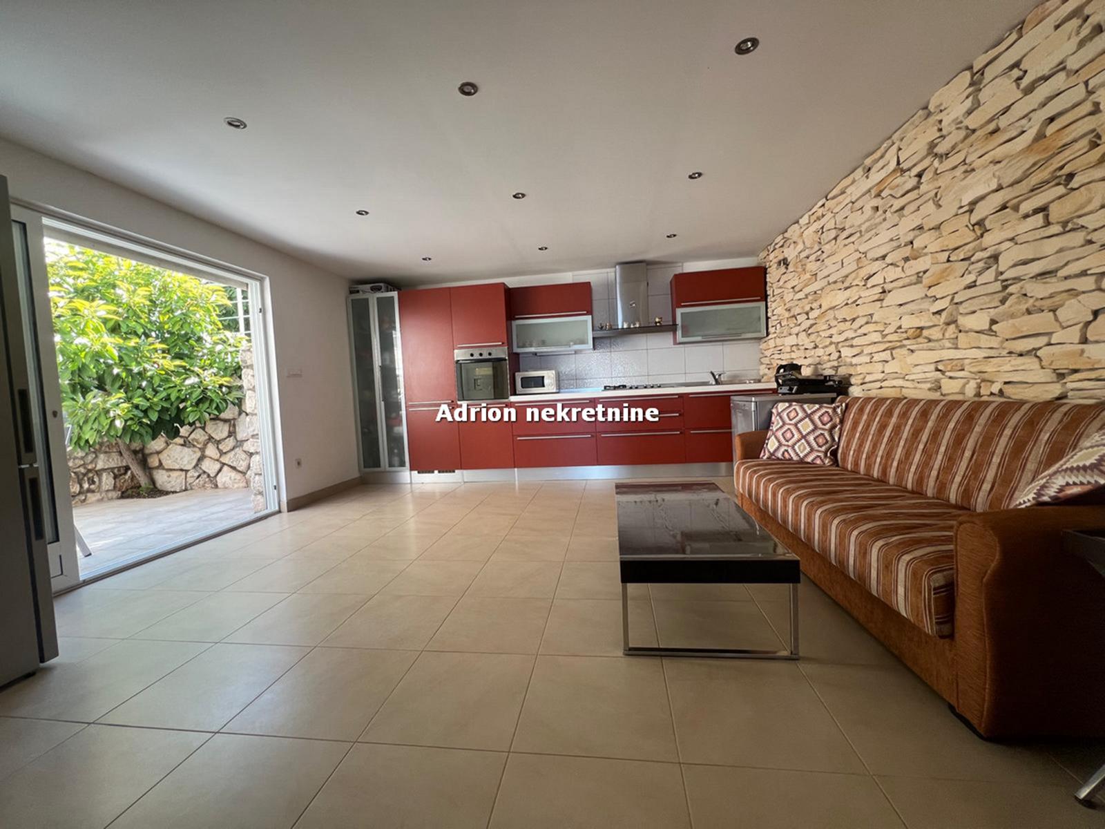 Dvojna kuća u Drašnicama sa odličnim pogledom na more, udaljena samo 40 m zračno od plaže. Kuća je smještena 3. red od plaže sa dva parkirna mjesta ispred kuće i vrtom iza kuće.