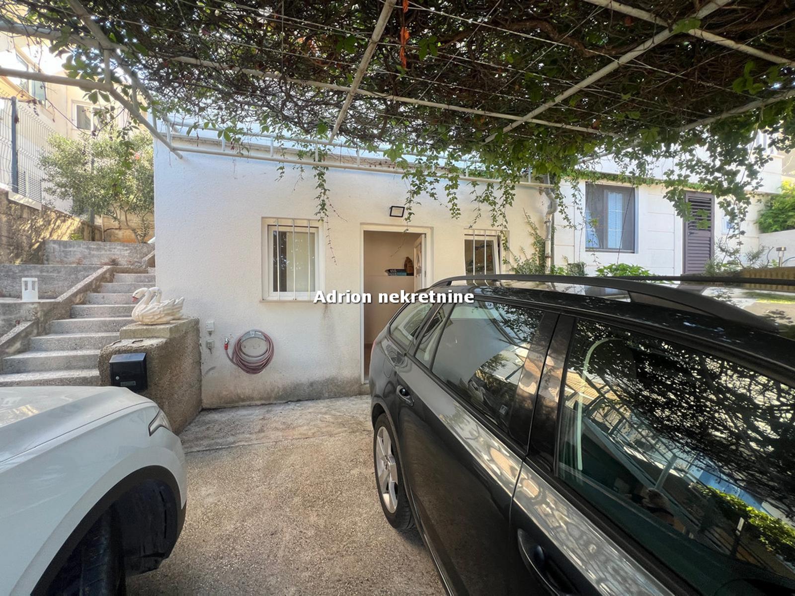 Ispred kuće su dva (2) parking mjesta. U suterenu kuće je prostorija sa kupatilom i spremištem.