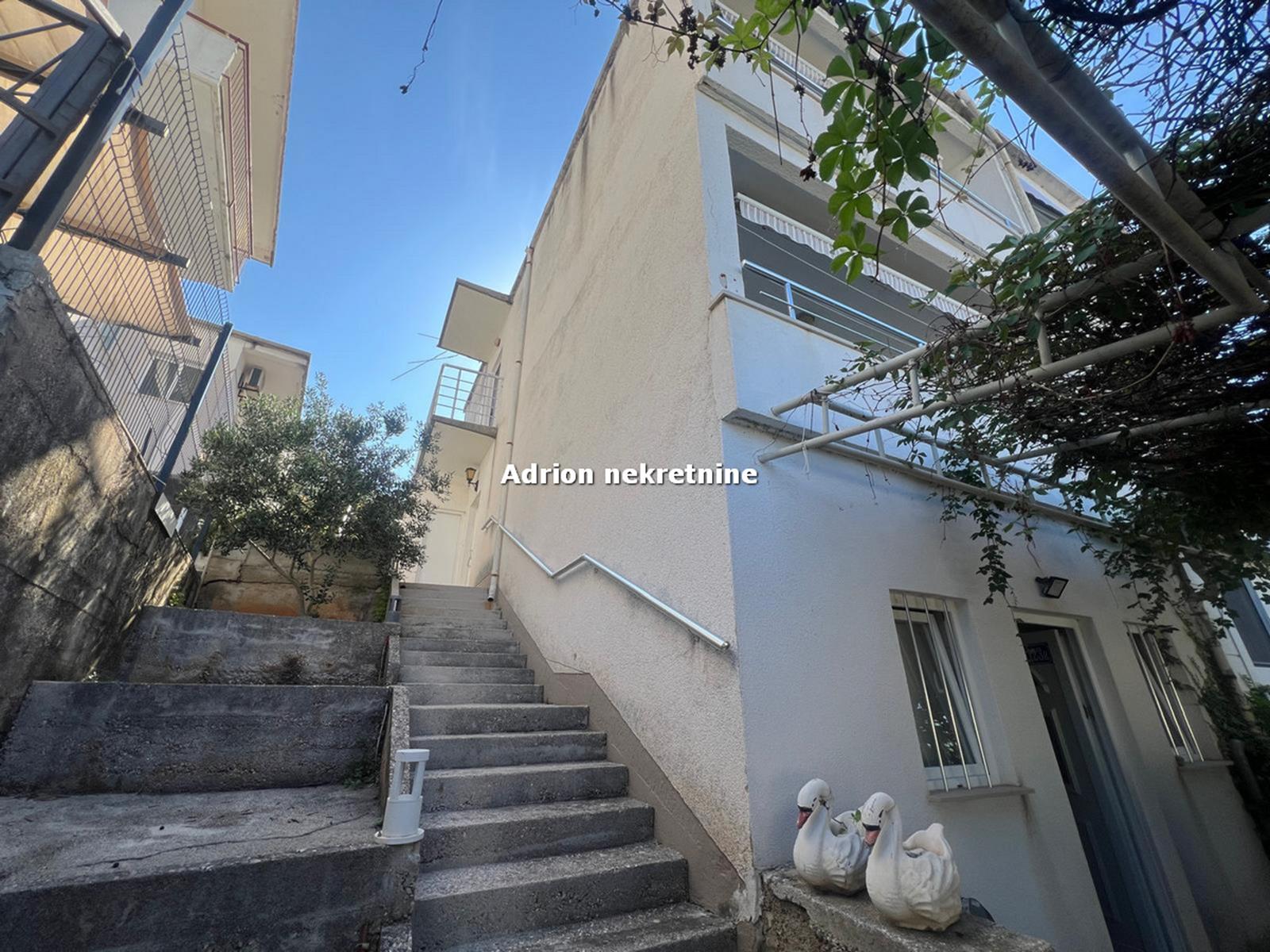 Na 1. katu je veliki dnevni boravak sa balkonom te velikom kuhinjom sa blagovaonom u drugom dijelu iz koje se može izaći na bočnu zapadnu terasu. Na 1. katu su tri (3) sobe i jedno veliko (1) kupatilo.