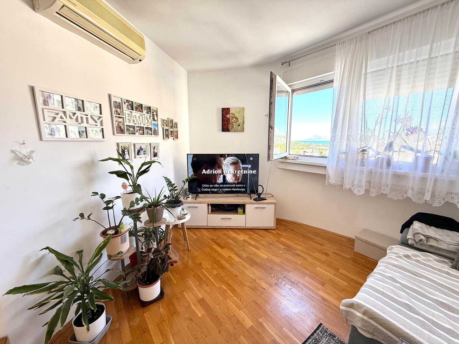 Odmah useljiv komforan dvosoban stan smješten je na trećem katu stambene zgrade na istočnom djelu grada Makarske. Površina stana je 74,36 m2. Stan se sastoji od hodnika, dnevnog boravka s blagovaonicom, kuhinje, dvije spavaće sobe, kupaonice, ostave i lođe. Top lokacija u blizini škole, vrtića, igrališta, dućana i trgovačkog centra... cca 7-10 minuta lagane šetnje do rive bez velikog uspona. Iz stana se pruža prekrasan pogled na more, otoke, grad i planinu. Vlasnički list 1/1.