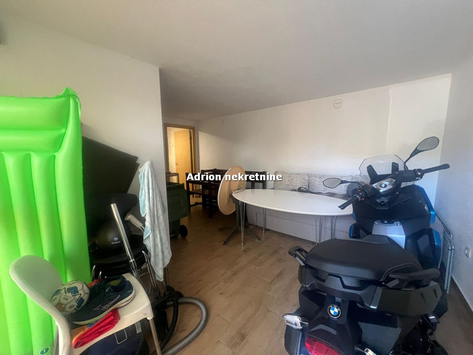 U garaži je postavljena keramika sa pripremom za malu mini kuhinju, te kupaonica. Stan je smješten u prizemlju novije, manje zgrade s ukupno 6 stanova.