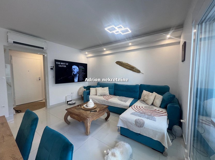Beautifully decorated two-bedroom apartment in the western part of the city of Makarska. The apartment is located in a completely new building with an elevator. The building is located in the western part of the city, close to all amenities needed for life.