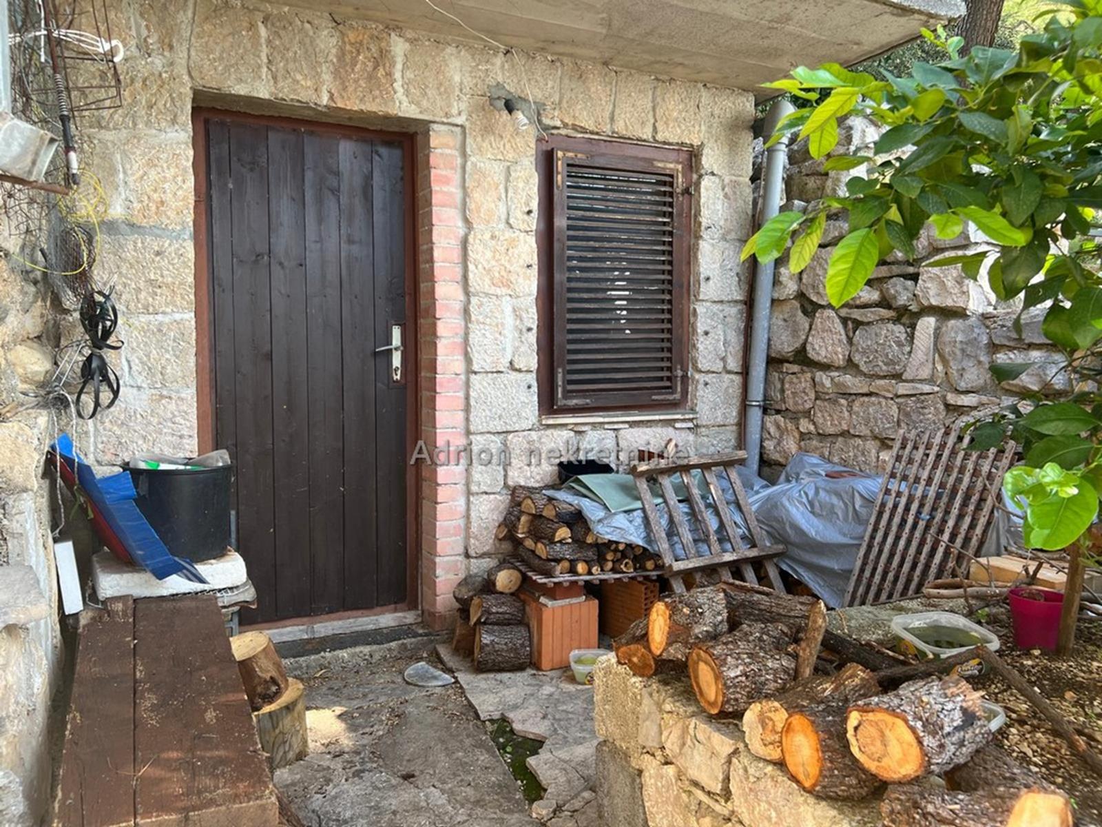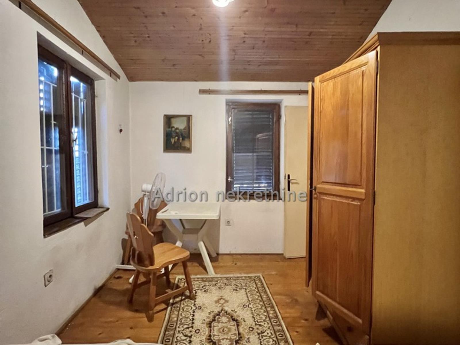 The net usable area of the ground floor is 27.32 m2 due to the thick stone walls of the living room area, and the net usable area of the 1st floor is a total of 31.95 m2 (inner part 30.48 m2 + uncovered terrace 5.88 m2), all in total net usable surface area of the residential part 59.27 m2. Auxiliary building - storage. The approximate dimensions of the house are 8 m x 6.5 m, and the dimensions of the plot are approx. 16 m x 38 m.