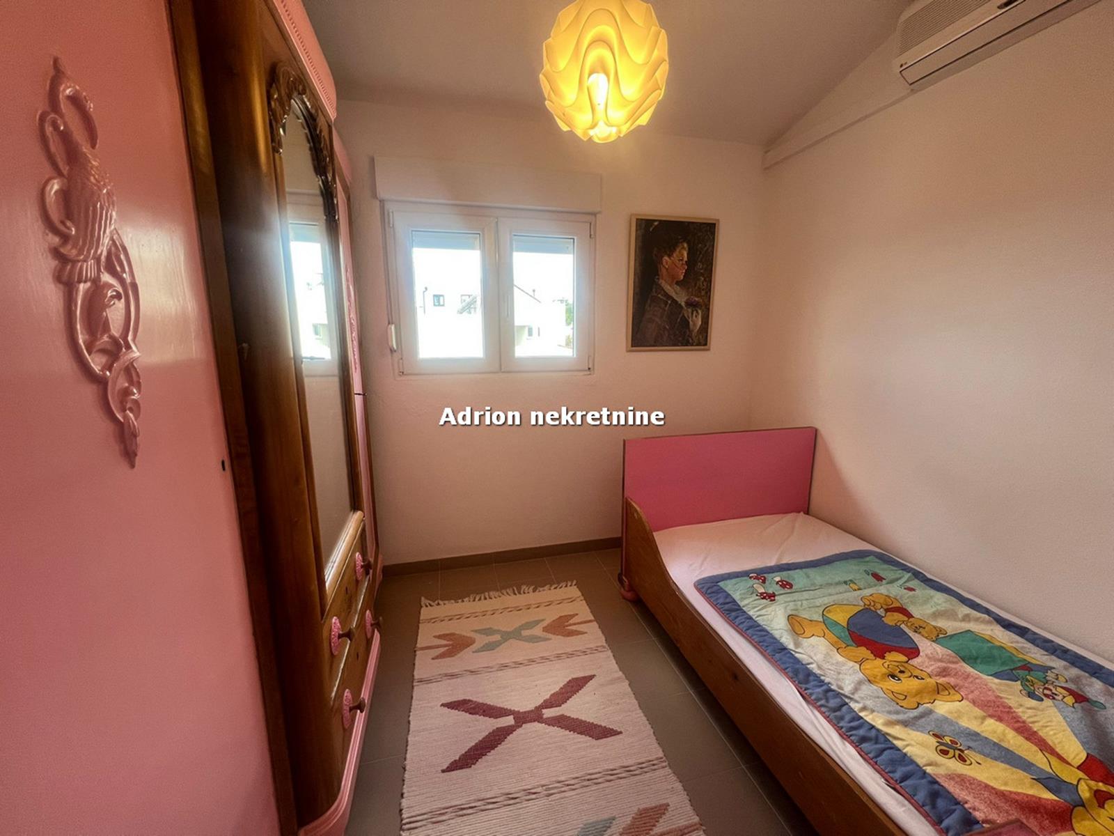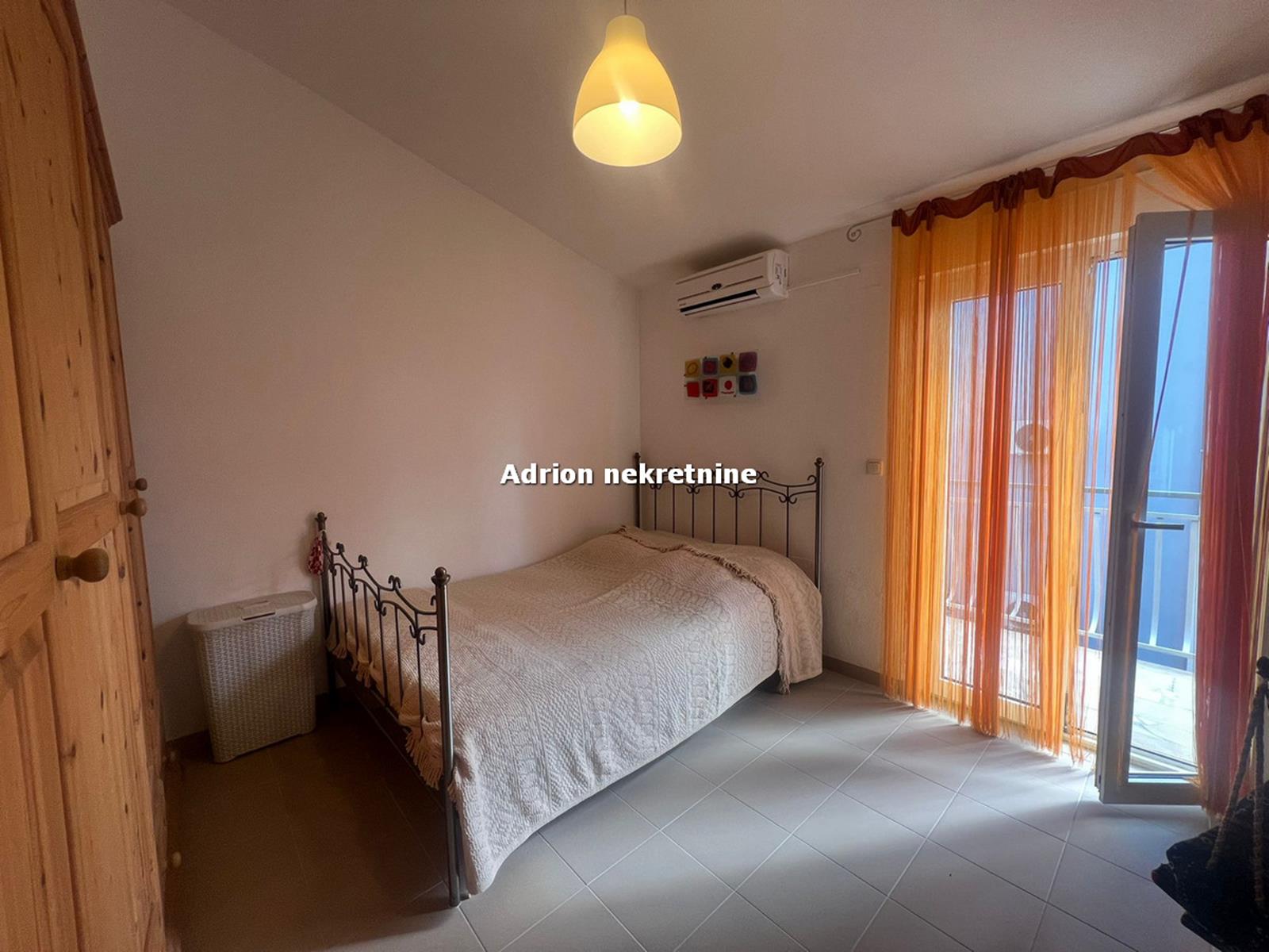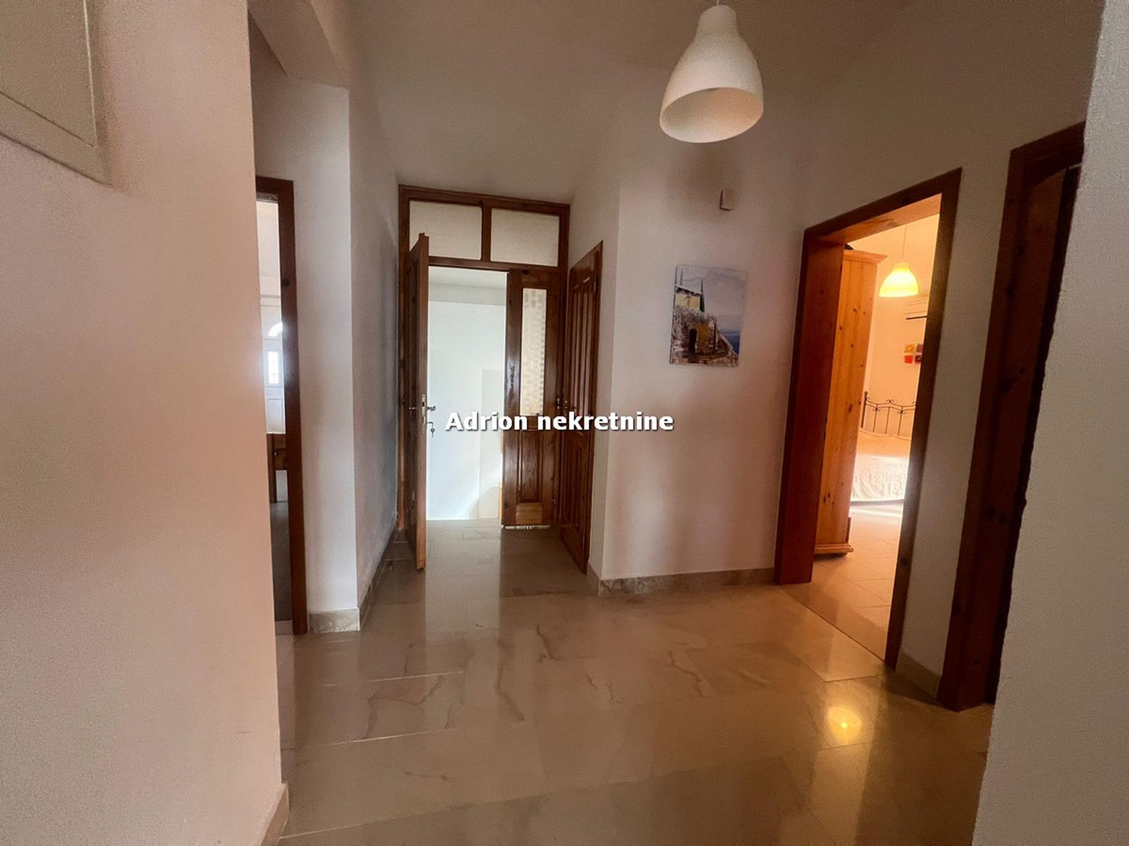 Three-room comfortable apartment consisting of a hallway, toilet and shower, dining room and living room, three bedrooms, terrace, balcony, covered entrance. The apartment has a garage no. 3 in front. The total area of the apartment is 108.75 m2. The apartment is fully furnished and ready to move in. The apartment is located in the western part of the city of Makarska on the second floor of the house/building.
