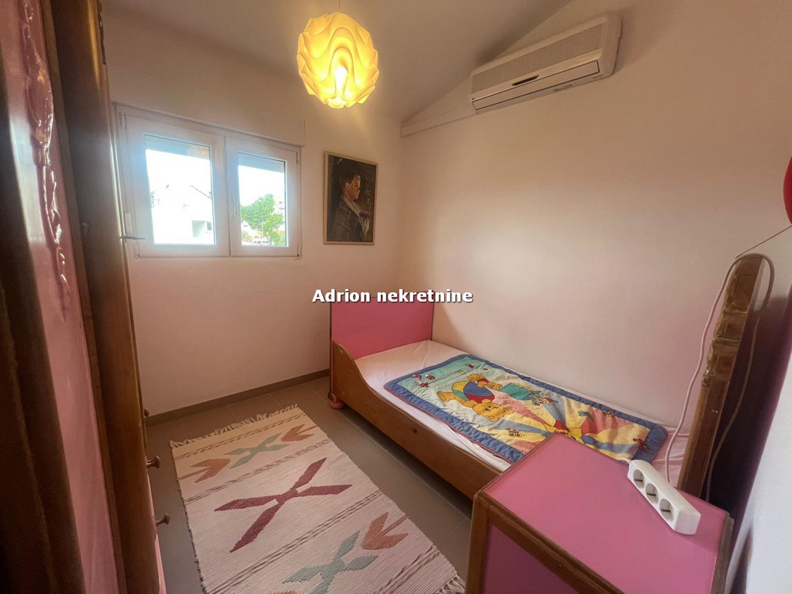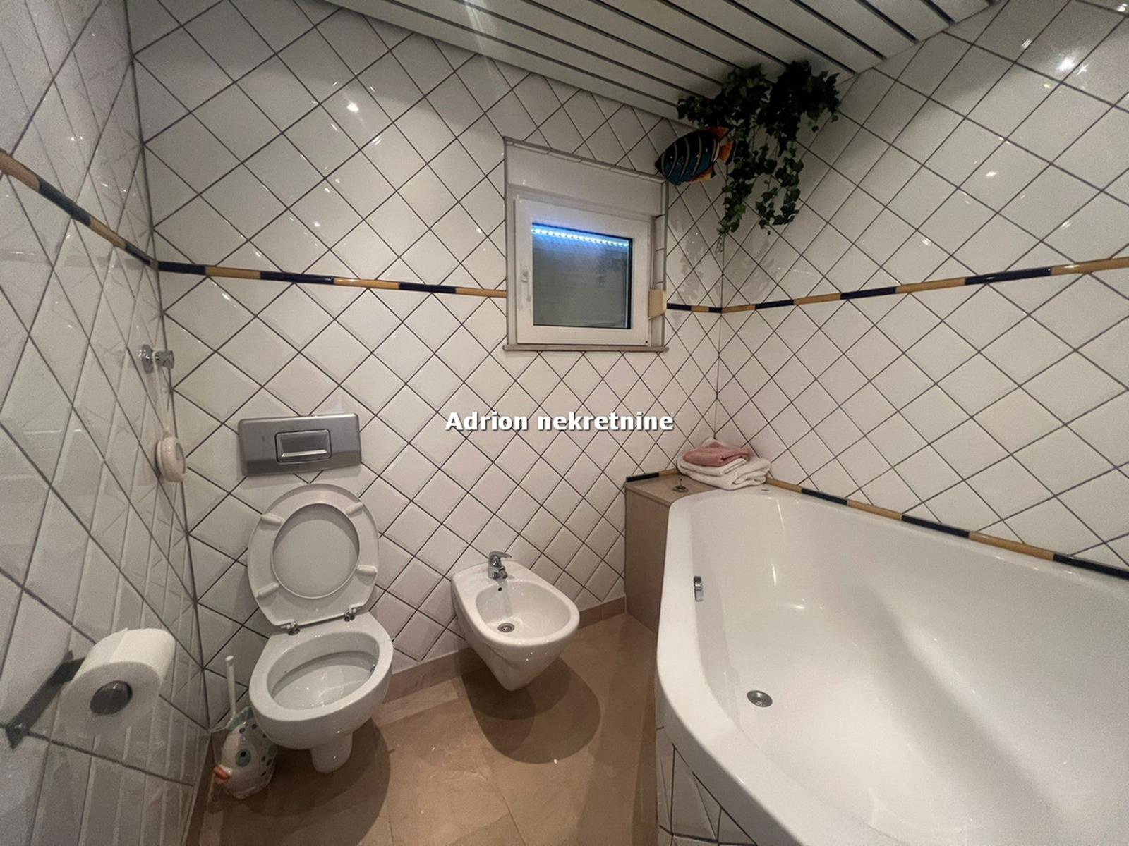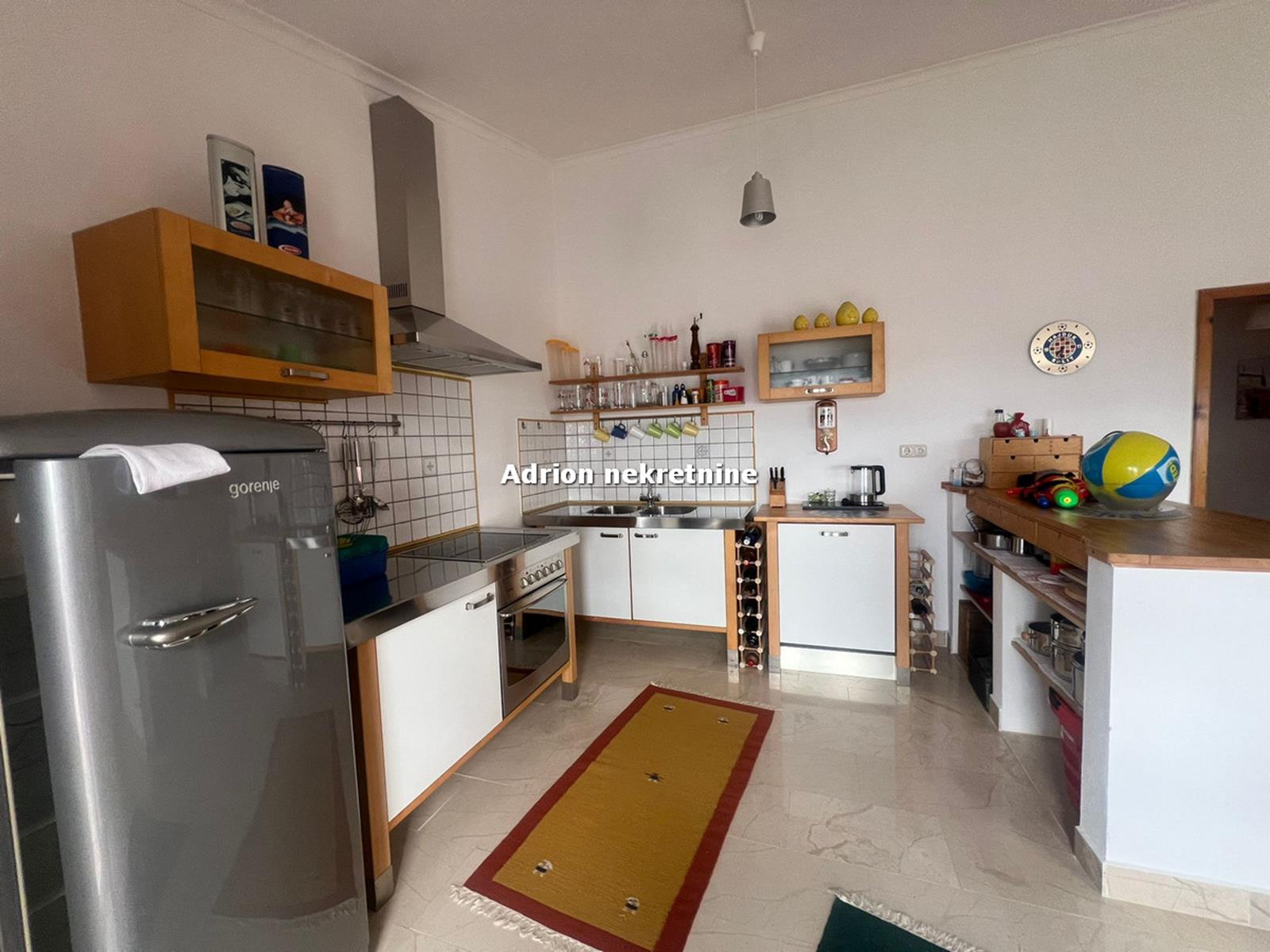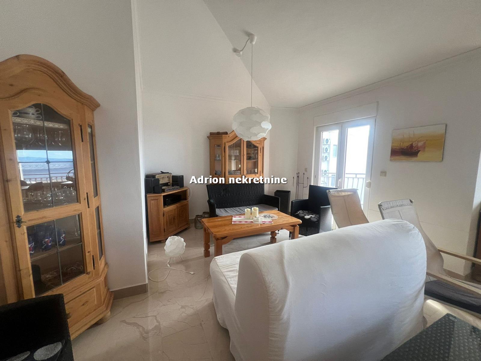 Three-room comfortable apartment consisting of a hallway, toilet and shower, dining room and living room, three bedrooms, terrace, balcony, covered entrance. The apartment has a garage no. 3 in front. The total area of the apartment is 108.75 m2. The apartment is fully furnished and ready to move in. The apartment is located in the western part of the city of Makarska on the second floor of the house/building.
