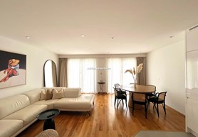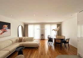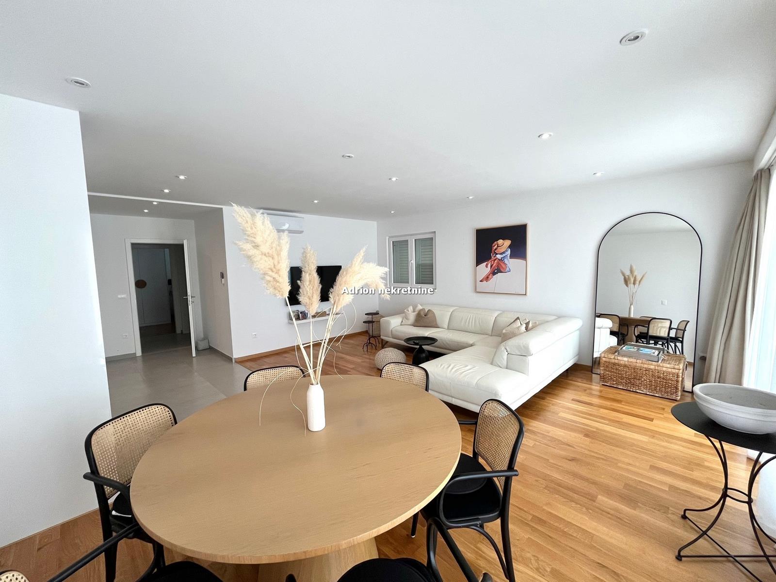 The apartment is equipped with quality and modern custom-made furniture, some pieces are designer. Modern LED lighting, quality parquet, first-class ceramic tiles, three air conditioners, glass railing, every detail of the apartment has been carefully designed by a famous designer.