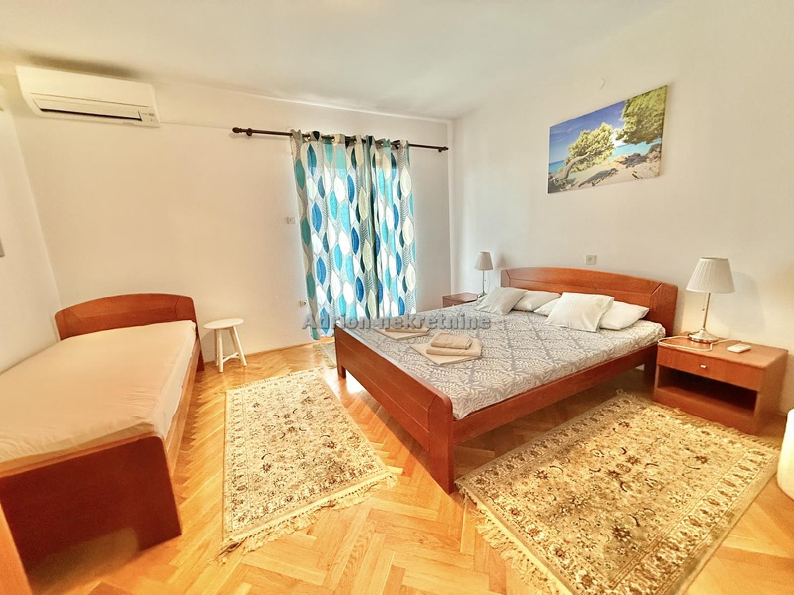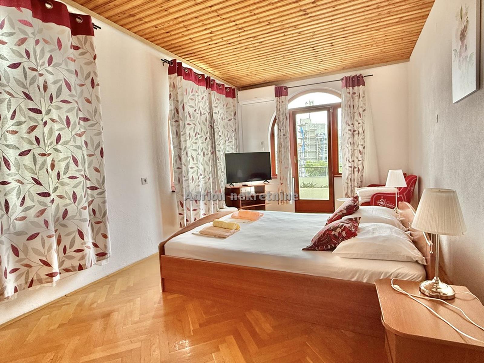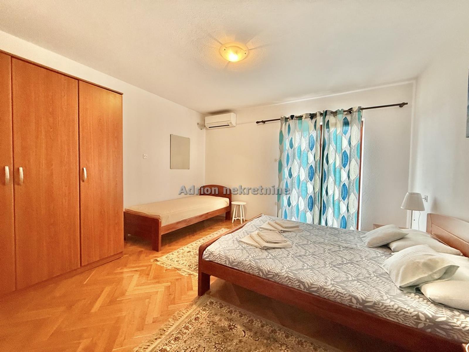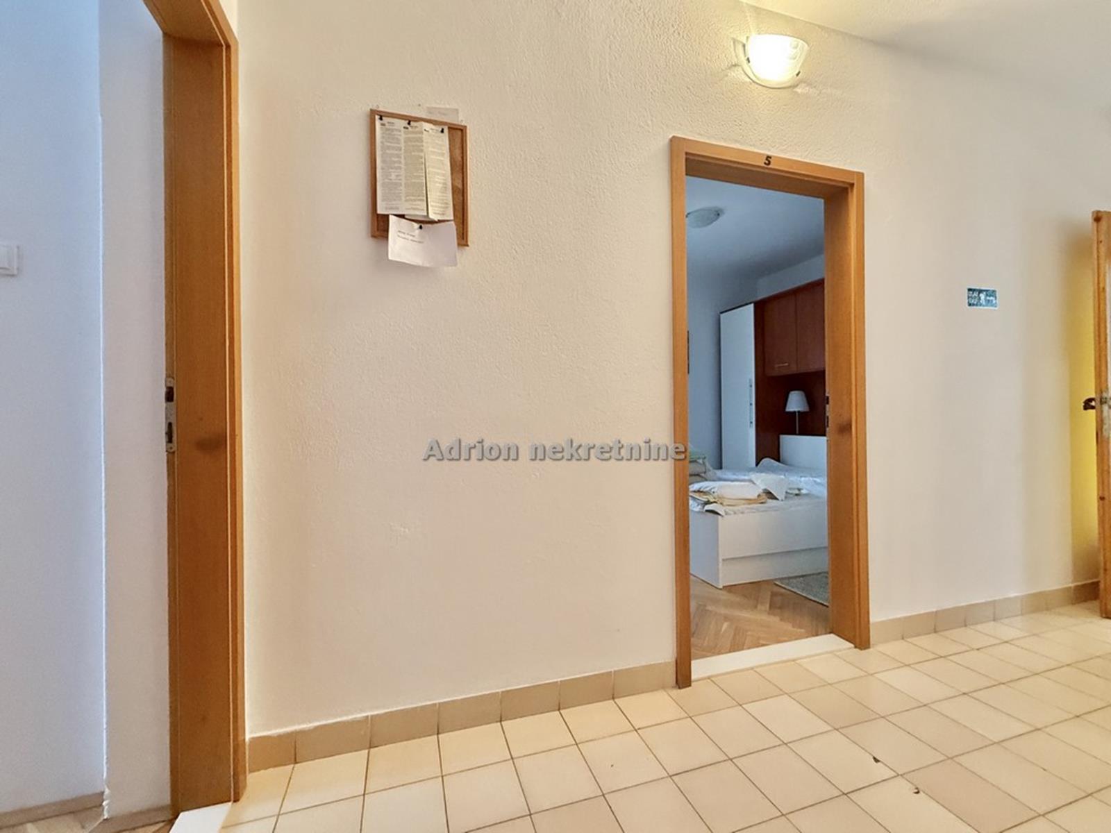 Part of a house for sale in a prime location in Makarska, just 120 m from the beach, with two large apartments and a business space.