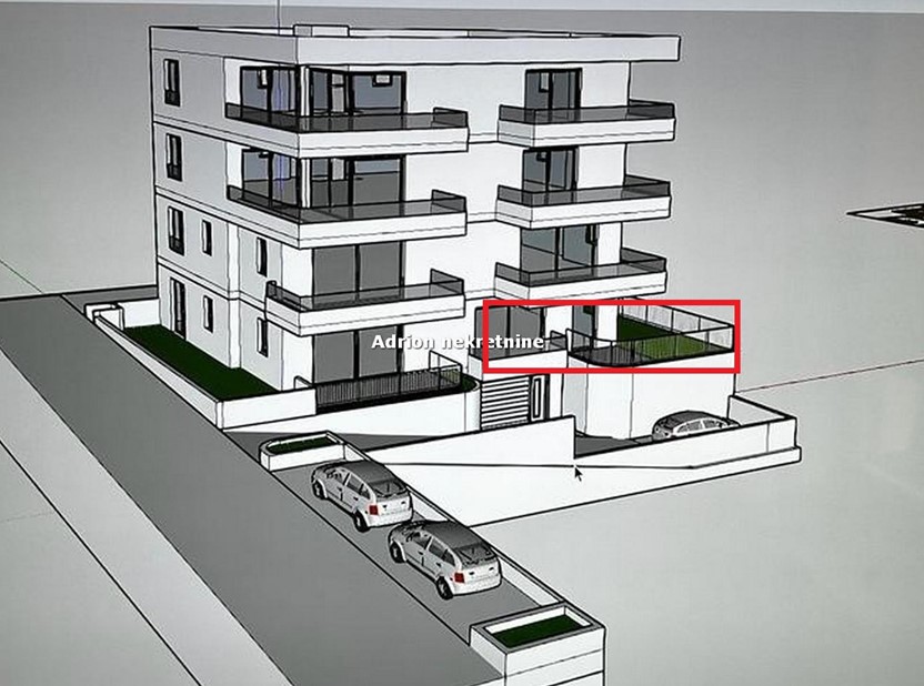 A two-room apartment in a new building with a total net area of 92.28 m2 is for sale. The apartment is in a great location in the western part of the city, district Zelenka, only 250 m above the highway. The building is being built on a location that is only 200 m away from a supermarket, bakery and other amenities, and 300 m from a school. The distance between the building and the beach is 500 m.