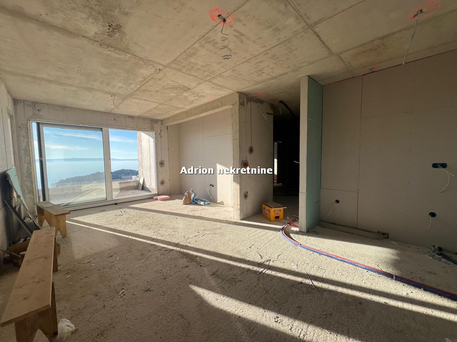 Atraktivan trosobni stan s parkingom i spremom iznad centra Makarska. Stan se nalazi u novogradnji koja je uskoro gotova. Površine 103m2 te se nalazi na 1. katu urbane vile novije gradnje. Stanu pripada parking mjesto ispred zgrade te ostava 9,60 m2 .