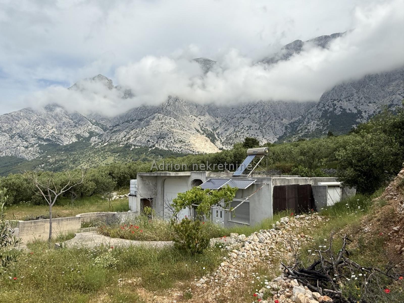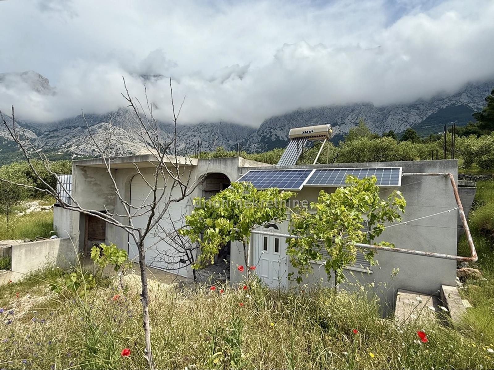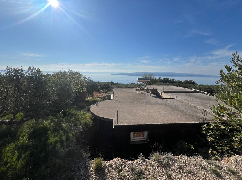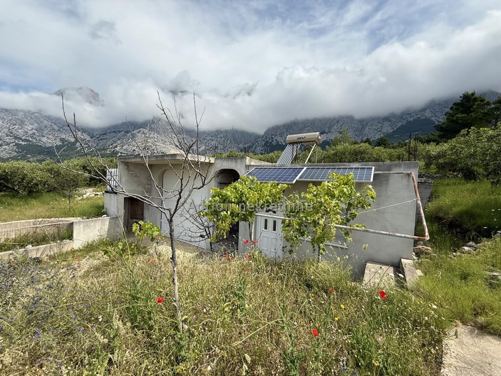 Prodaje se poljoprivredno zemljište u Bastu okvirne površine 1.054 m2, na kojem se nalazi nekoliko maslina i prizemna kuća koja se sastoji od garaže i jednog jednosobnog apartmana.
