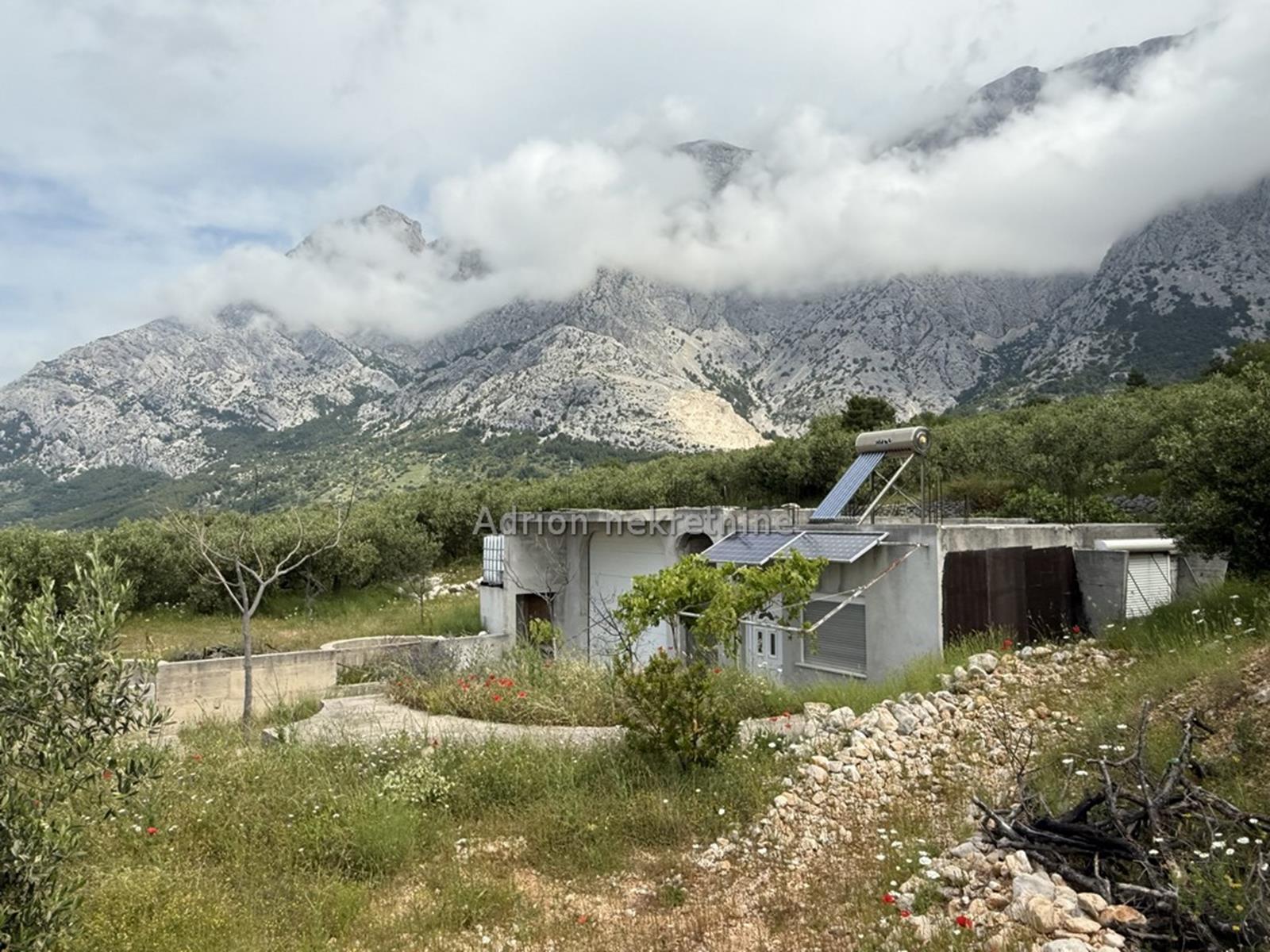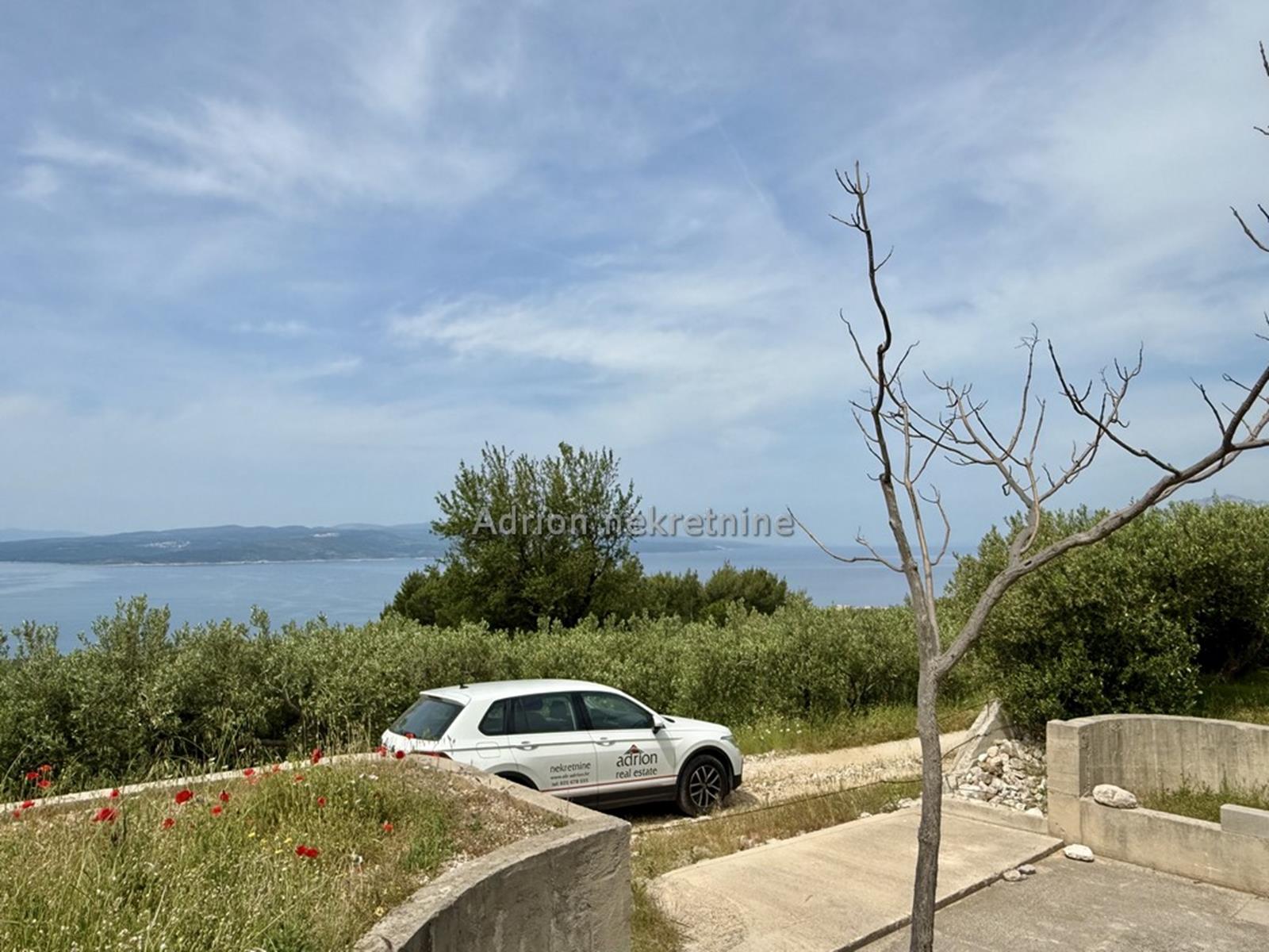 Na zemljištu su stabla maslina i izgrađena zgrada sa garažom i manjim apartmanom, a na susjednim parcelama su obrađene masline i vinogradi.