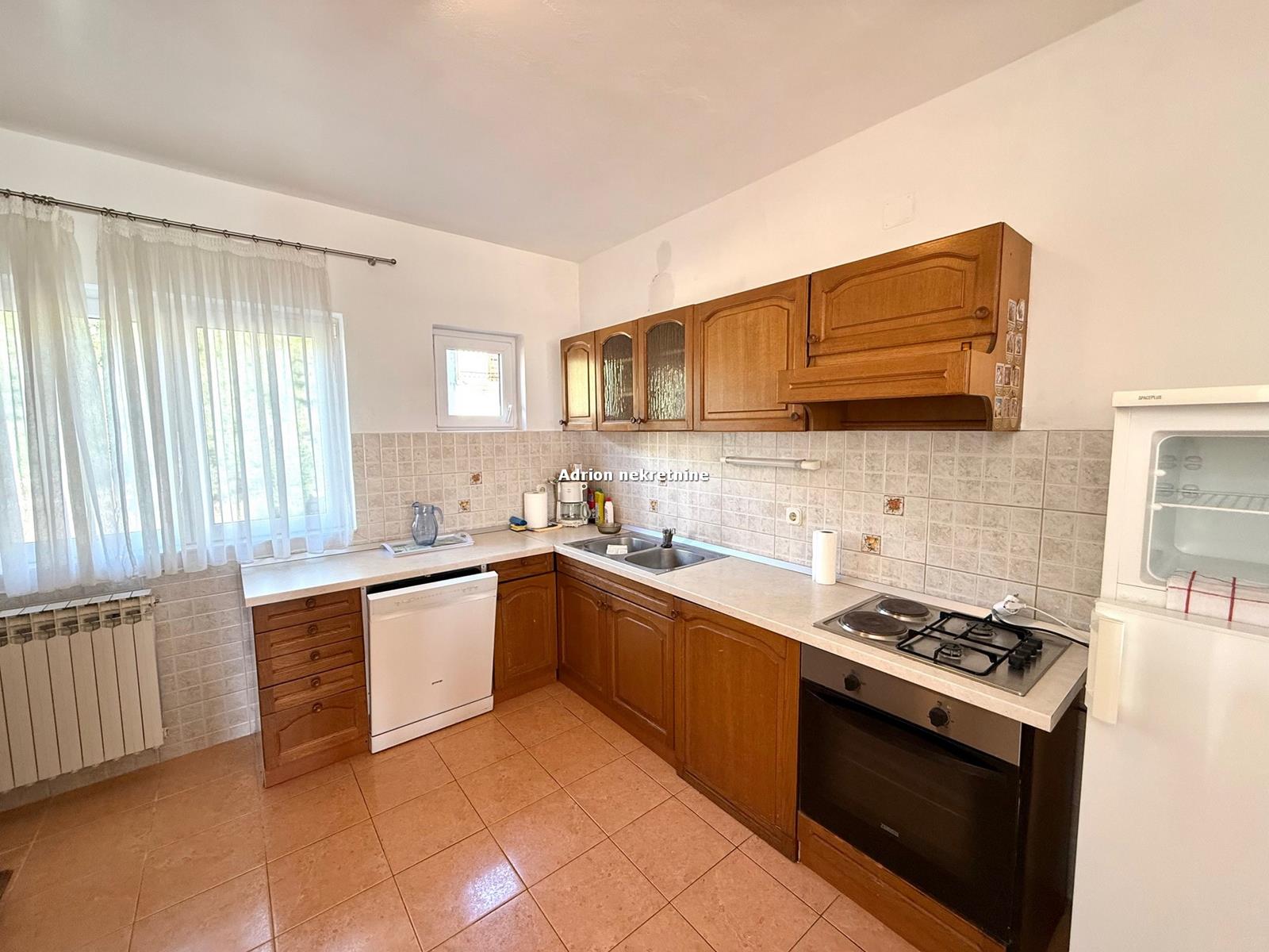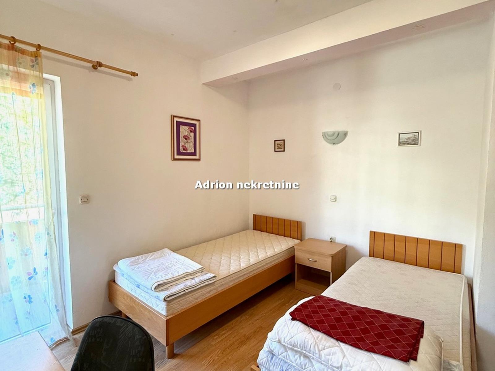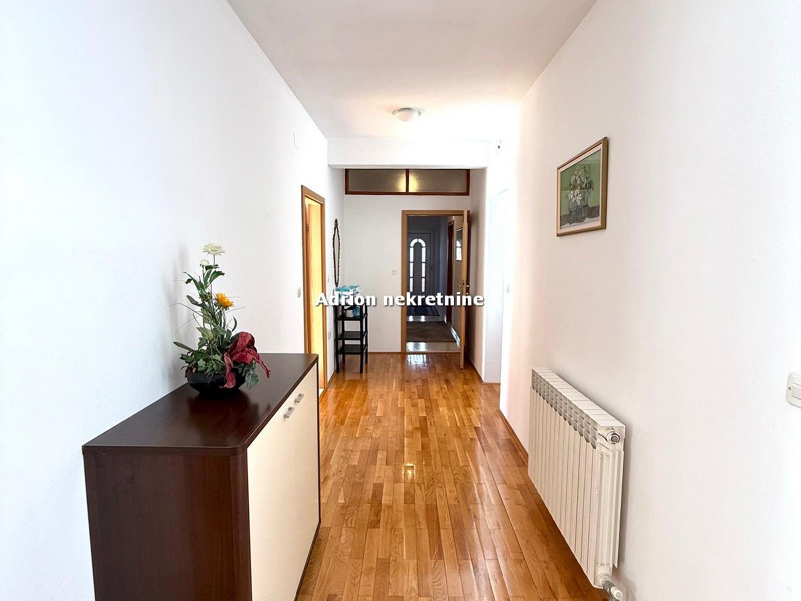 Na katu je smješten lijepi, prostrani stan koji je sagrađen 2005. godine. Stan se sastoji od 5 spavaćih soba, dnevne sobe, 3 kuhinje, 4 wc-a i balkona duž čitave etaže.