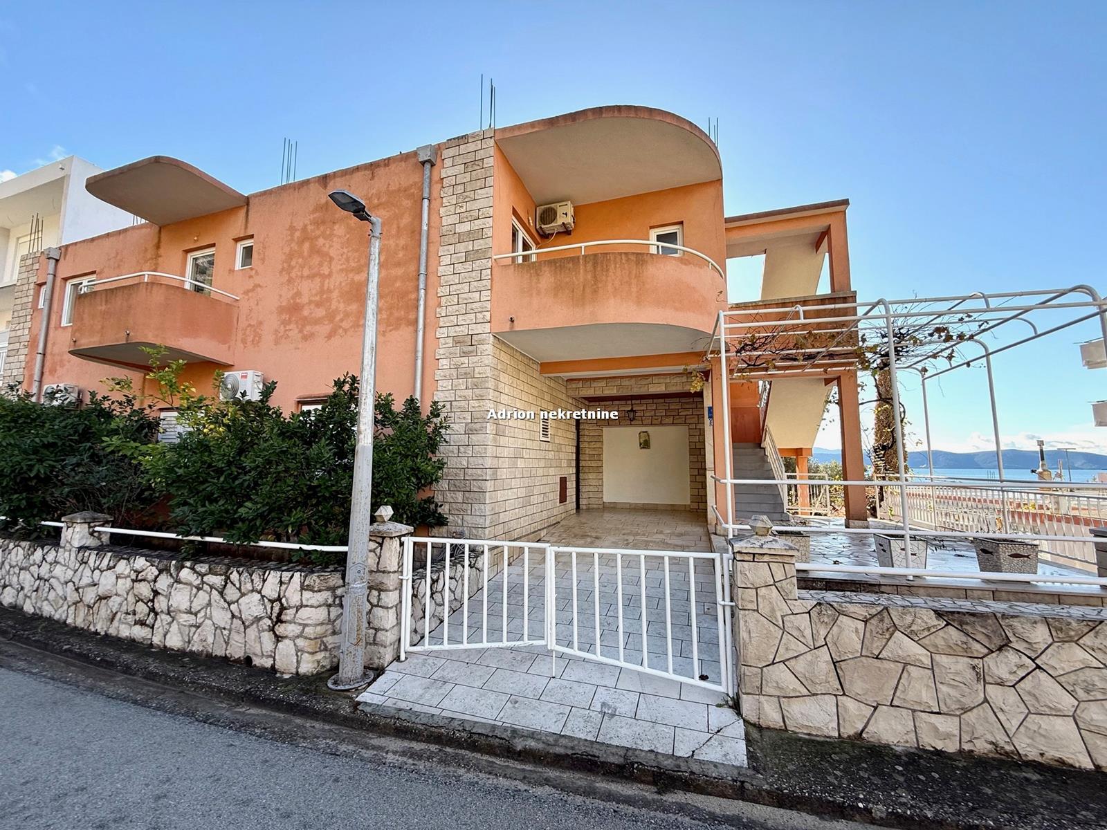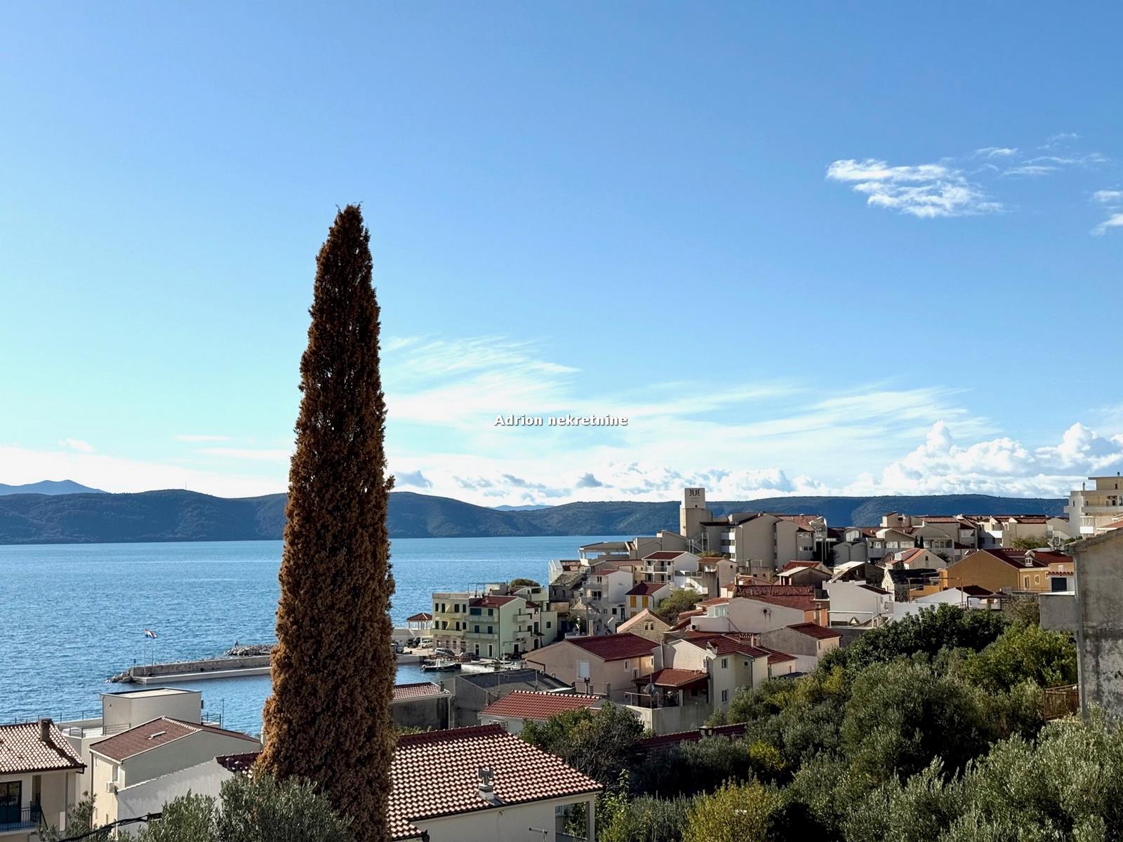 Ova lijepa kuća smještena je samo 90 metara od plaže i iz svih kuteva ima pogled na more i otoke. Južna orijentacija nekretnine omogućava velik prodor prirodnog svjetla.