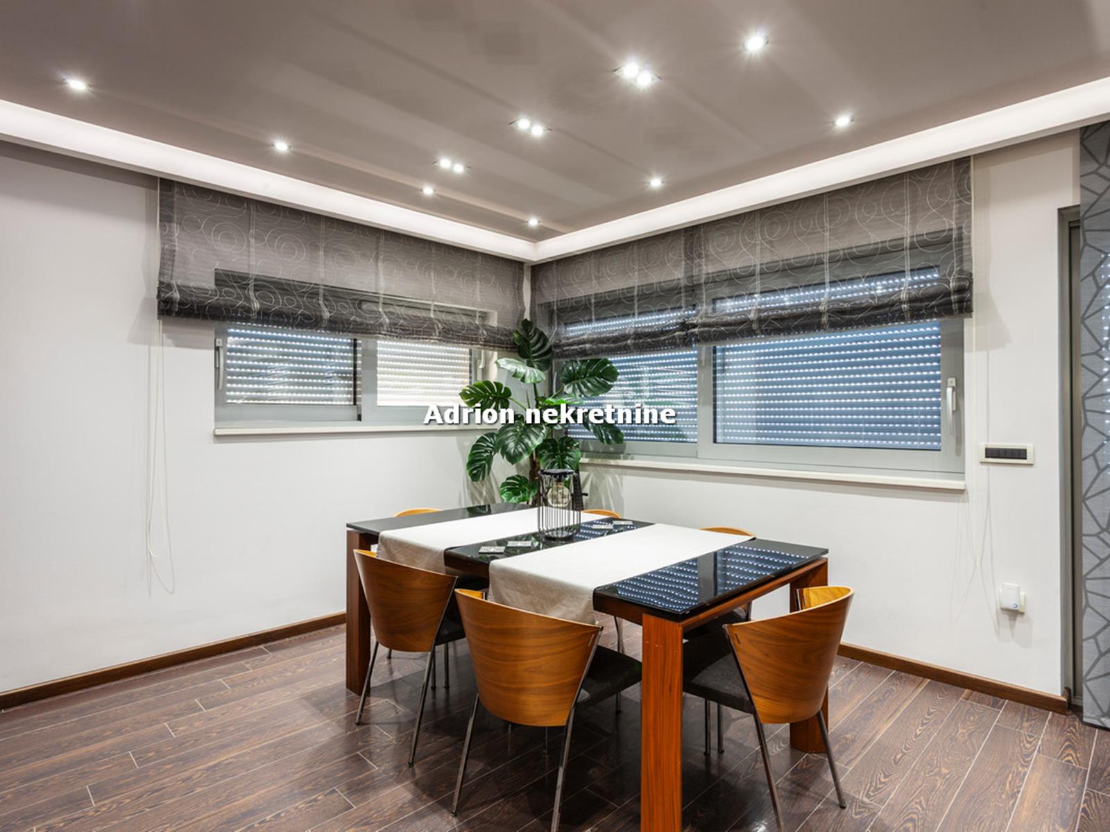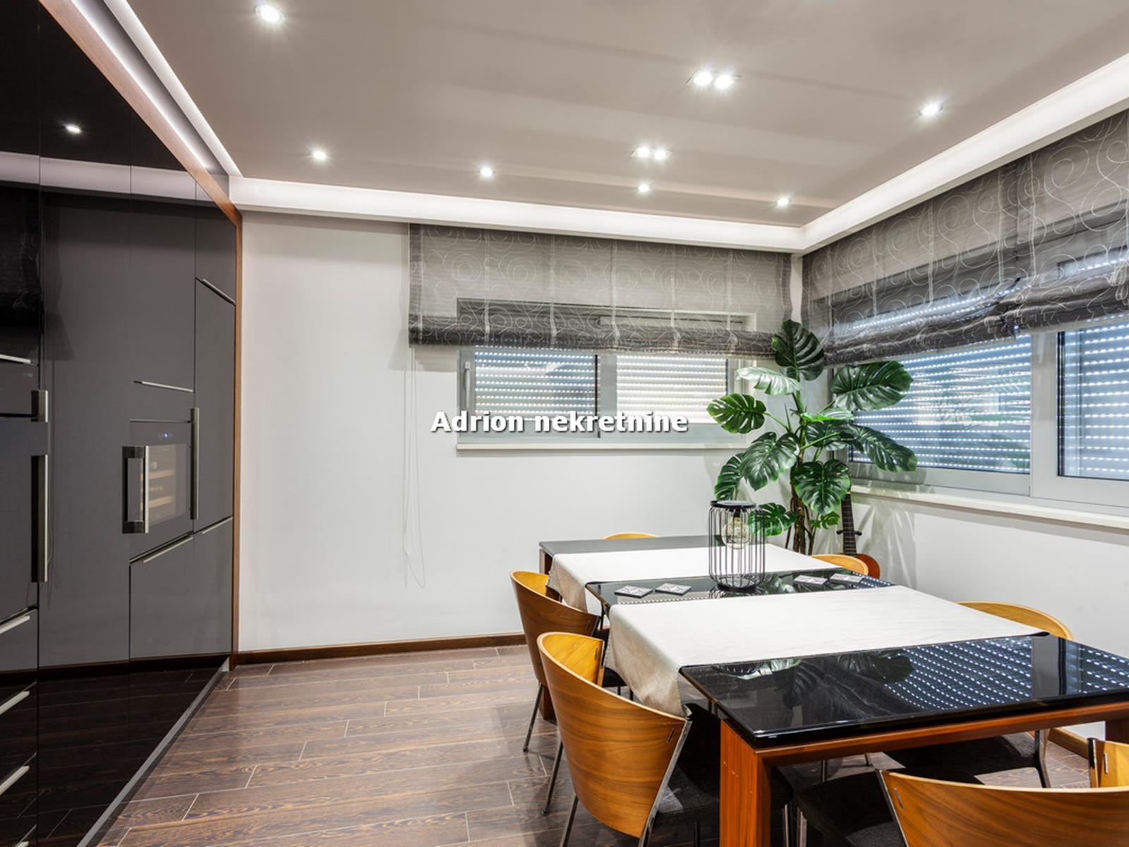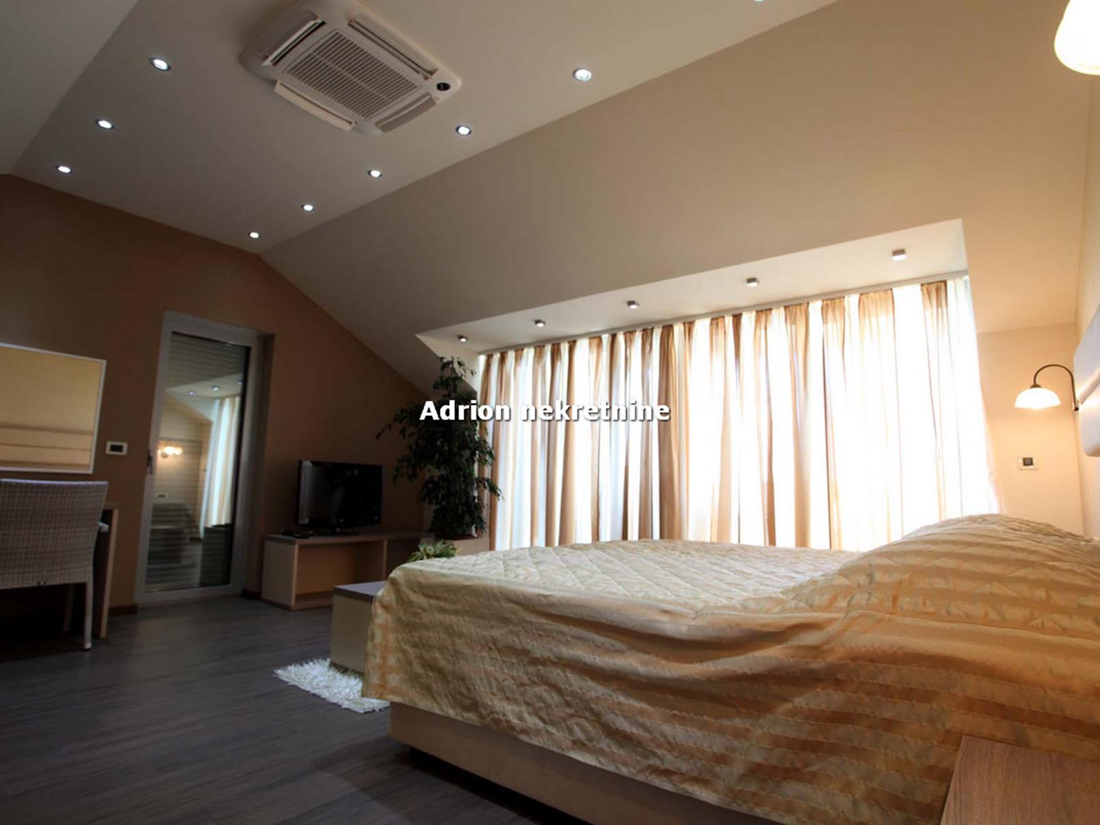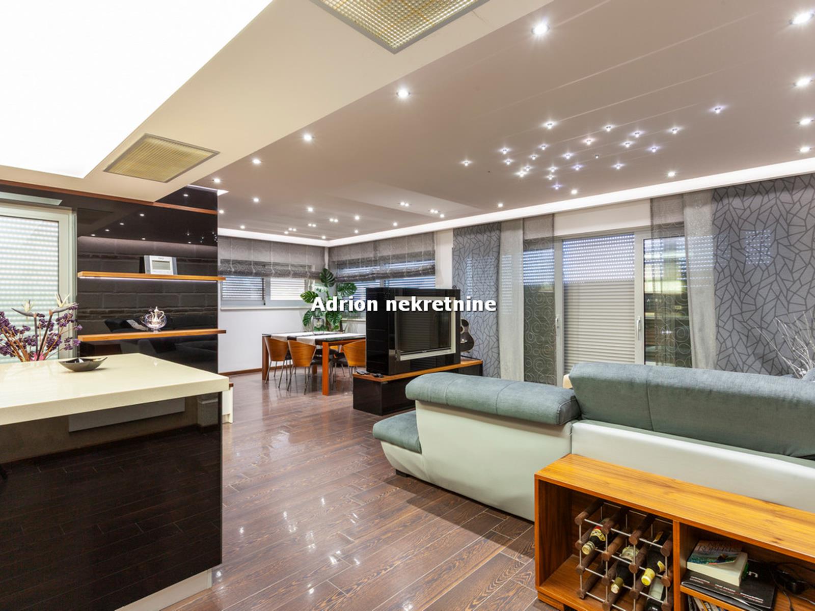 Stan uključuje i dva garažna mjesta u podrumu objekta i ostavu na katu stana. Sve prostorije su klimatizirane, podno grijanje, apsolutno je sve opremljeno visokokvalitetnim aparatima kao i materijalima u izgradnji same vile.