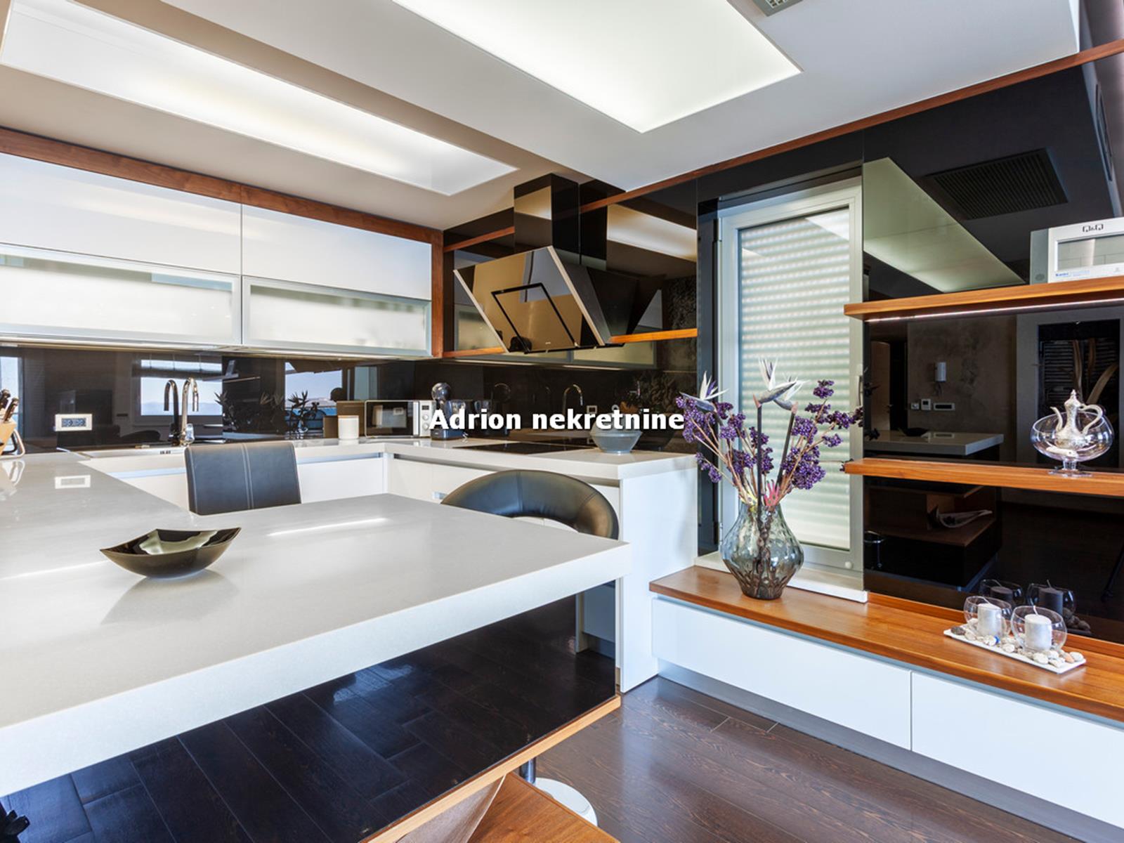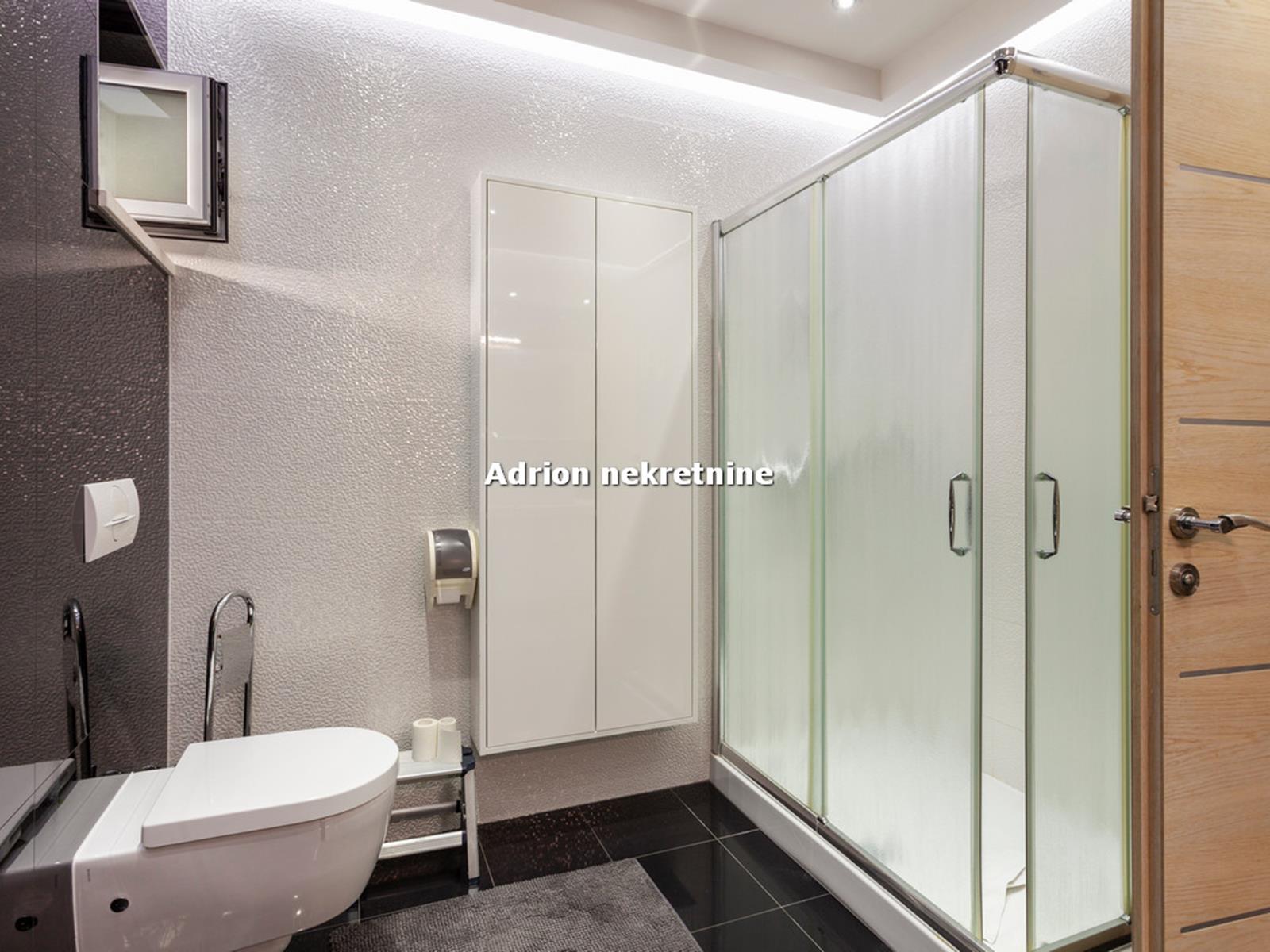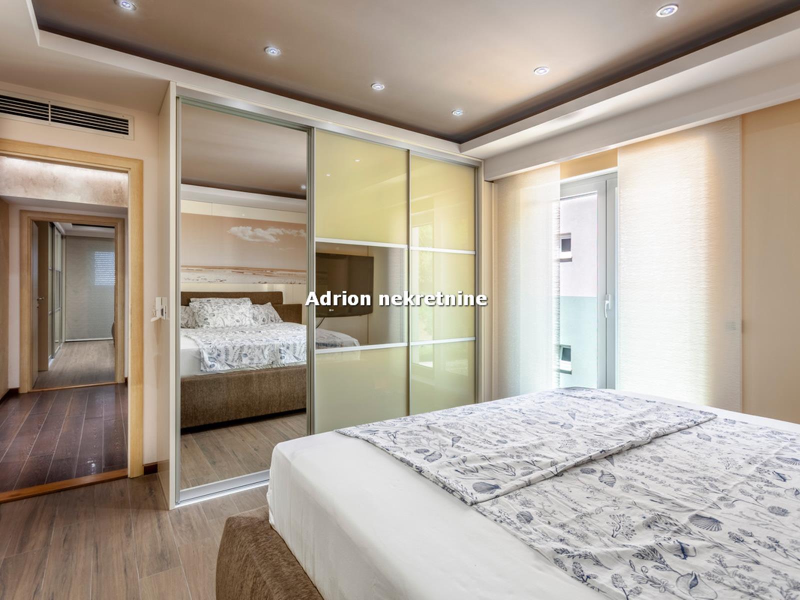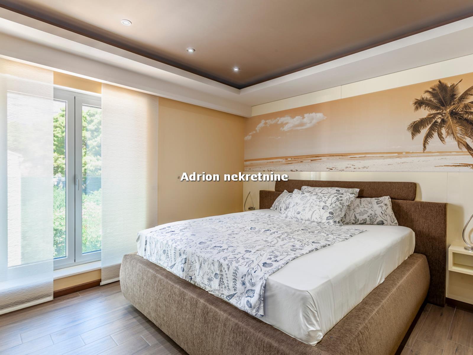 Stan uključuje i dva garažna mjesta u podrumu objekta i ostavu na katu stana. Sve prostorije su klimatizirane, podno grijanje, apsolutno je sve opremljeno visokokvalitetnim aparatima kao i materijalima u izgradnji same vile.