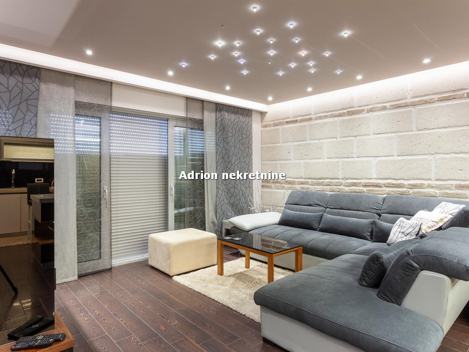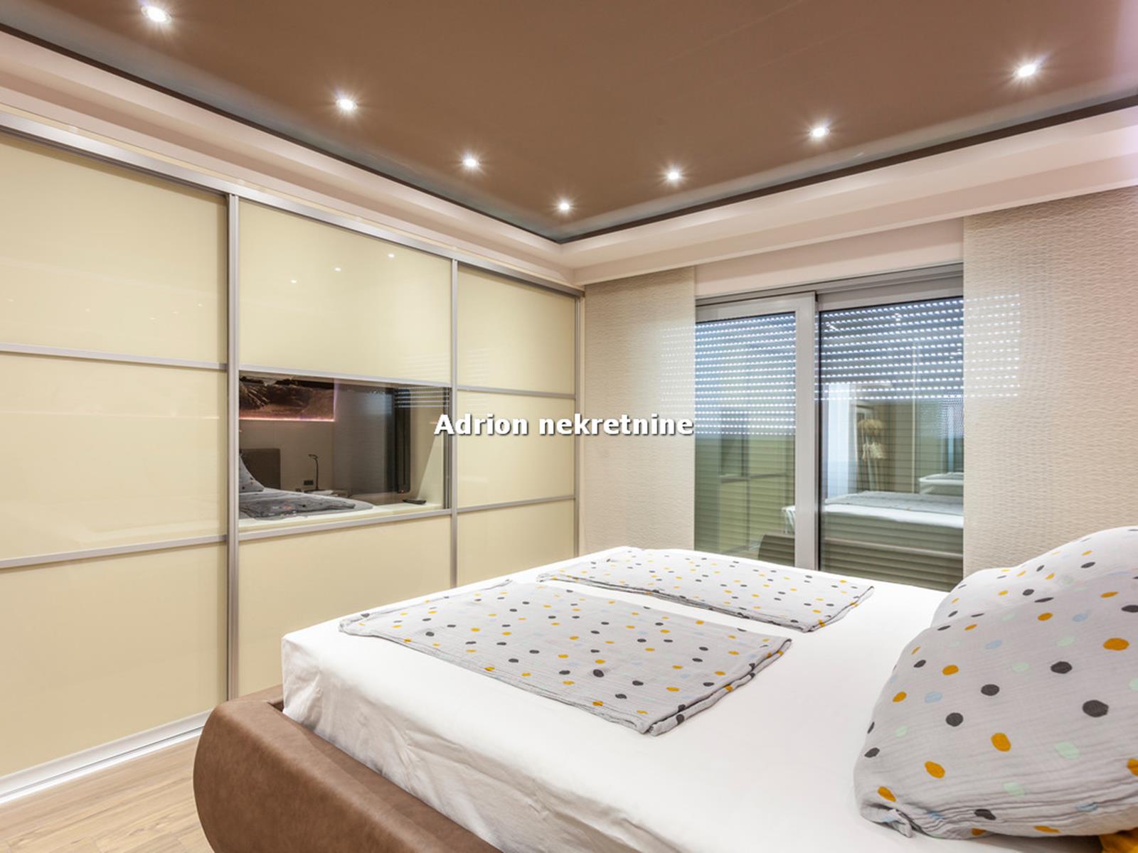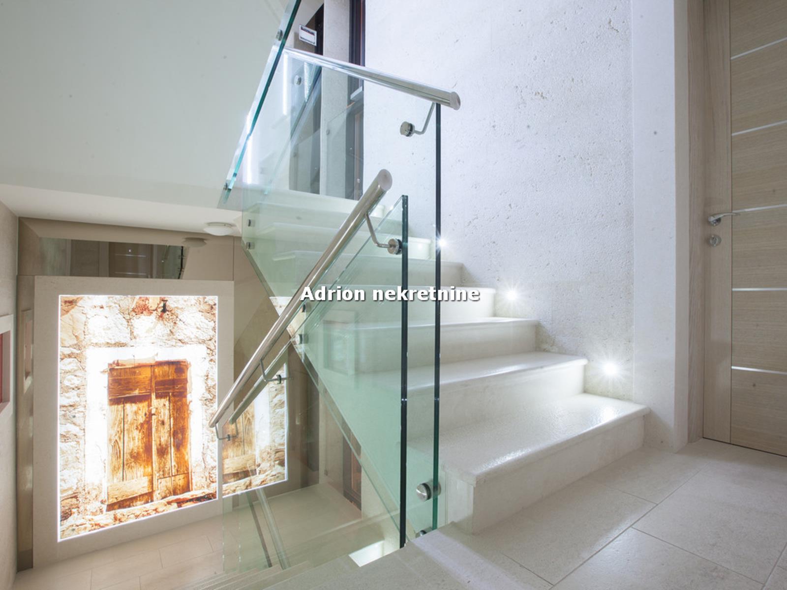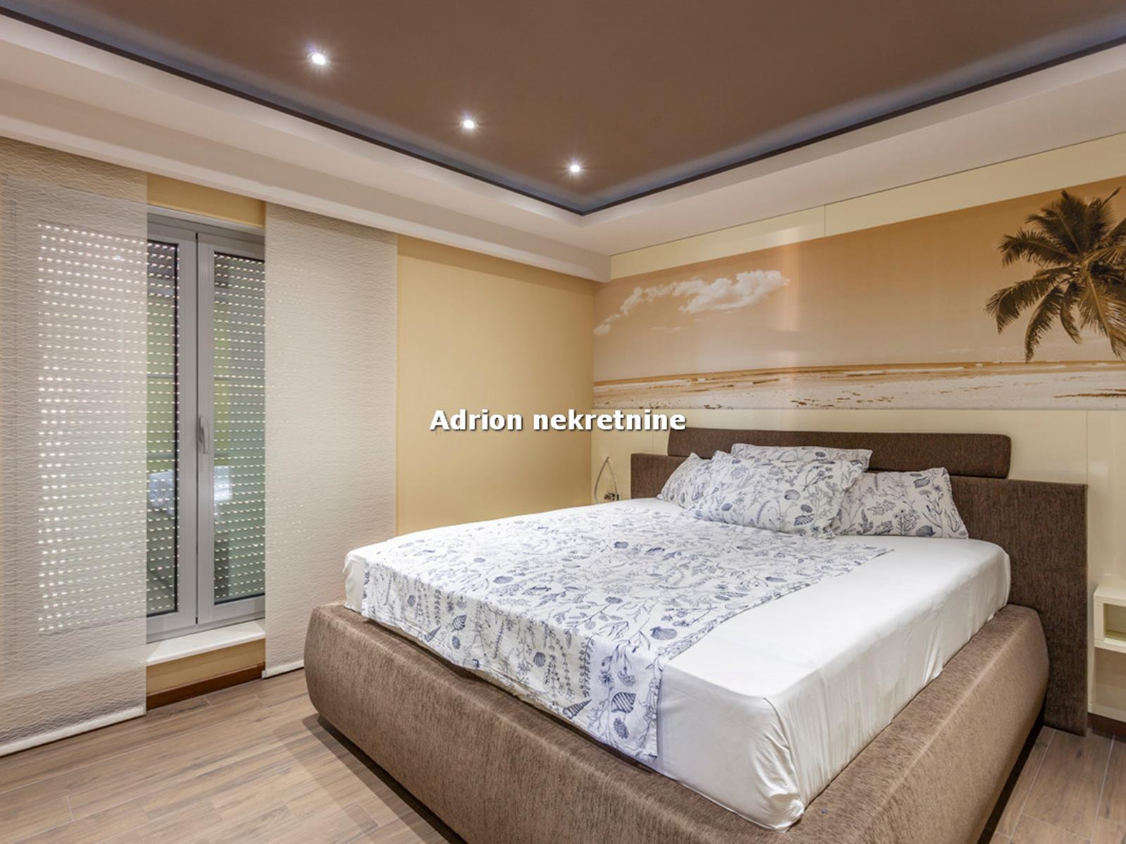 Stan uključuje i dva garažna mjesta u podrumu objekta i ostavu na katu stana. Sve prostorije su klimatizirane, podno grijanje, apsolutno je sve opremljeno visokokvalitetnim aparatima kao i materijalima u izgradnji same vile.