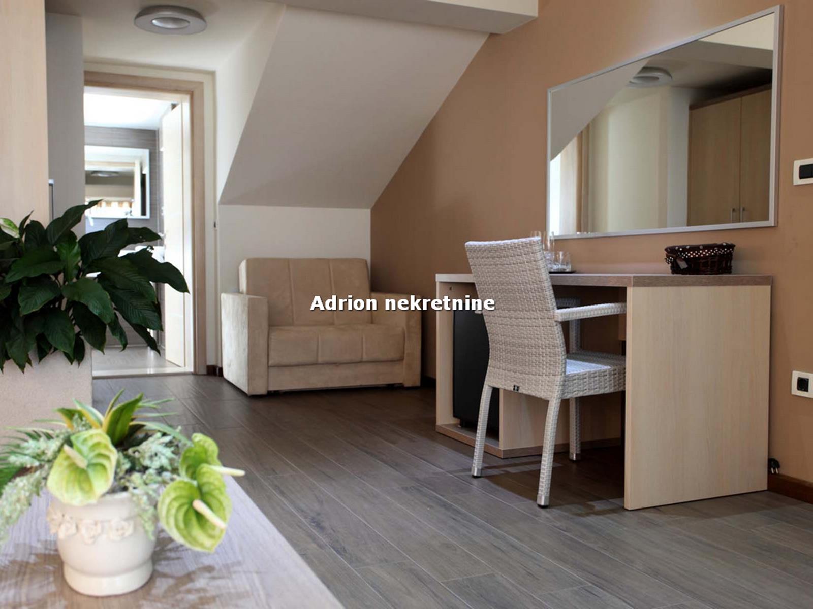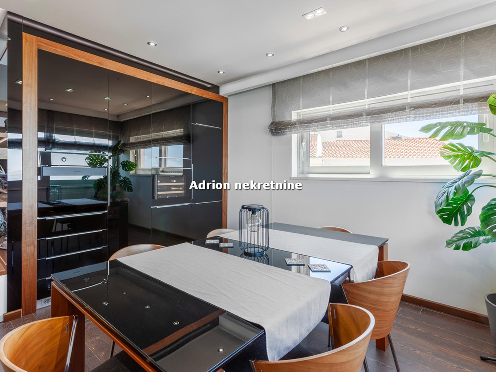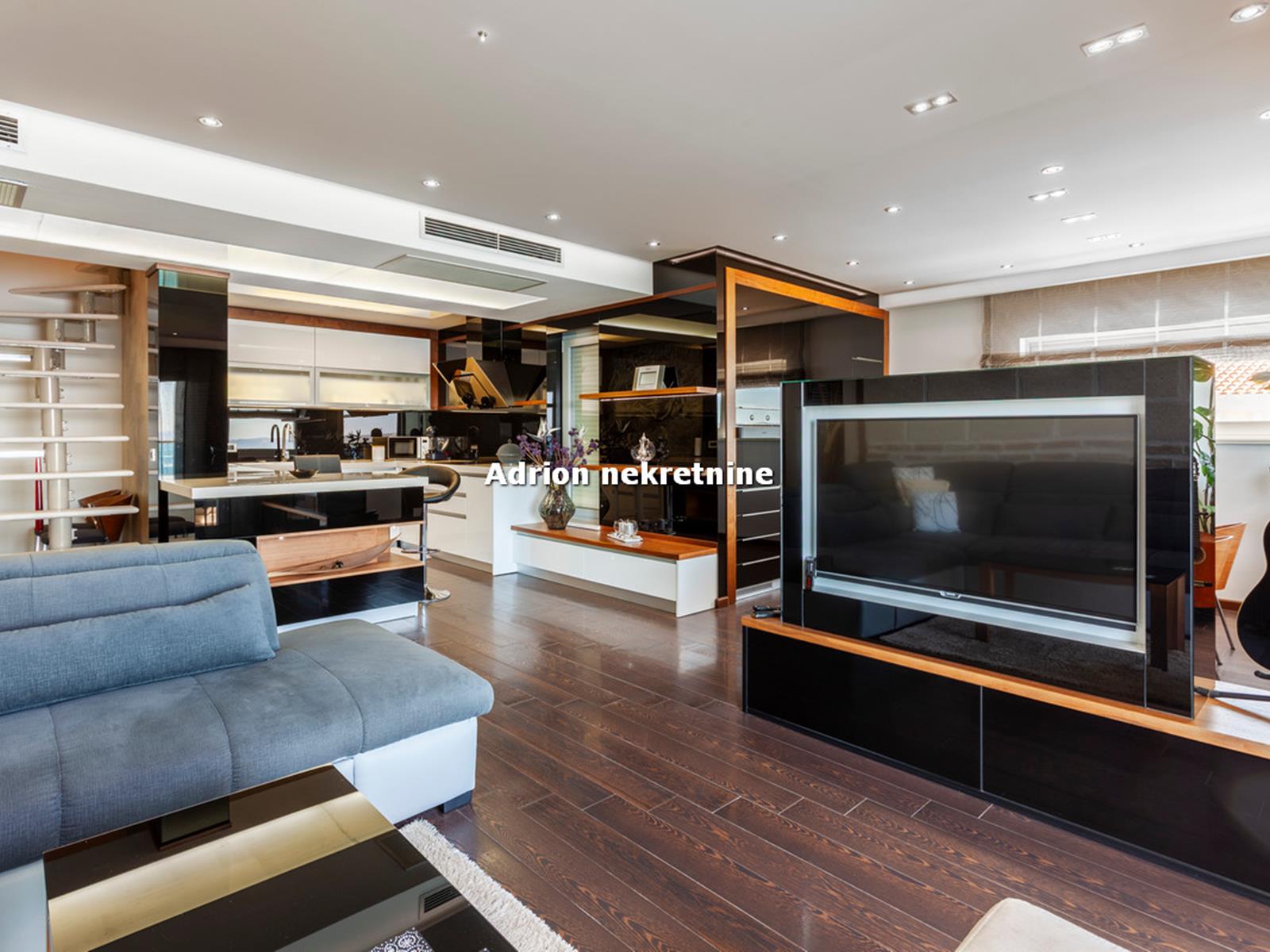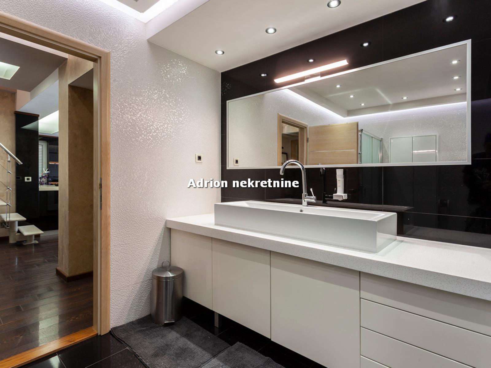 Stan uključuje i dva garažna mjesta u podrumu objekta i ostavu na katu stana. Sve prostorije su klimatizirane, podno grijanje, apsolutno je sve opremljeno visokokvalitetnim aparatima kao i materijalima u izgradnji same vile.