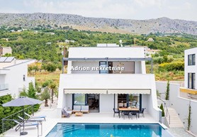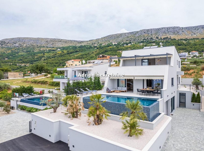 Vila s bazenom modernog dizajna, visokog standarda kvalitete gradnje i stupnja opremljenosti, smještena na na uzvisini s prekrasnim panoramskim pogledom na more.