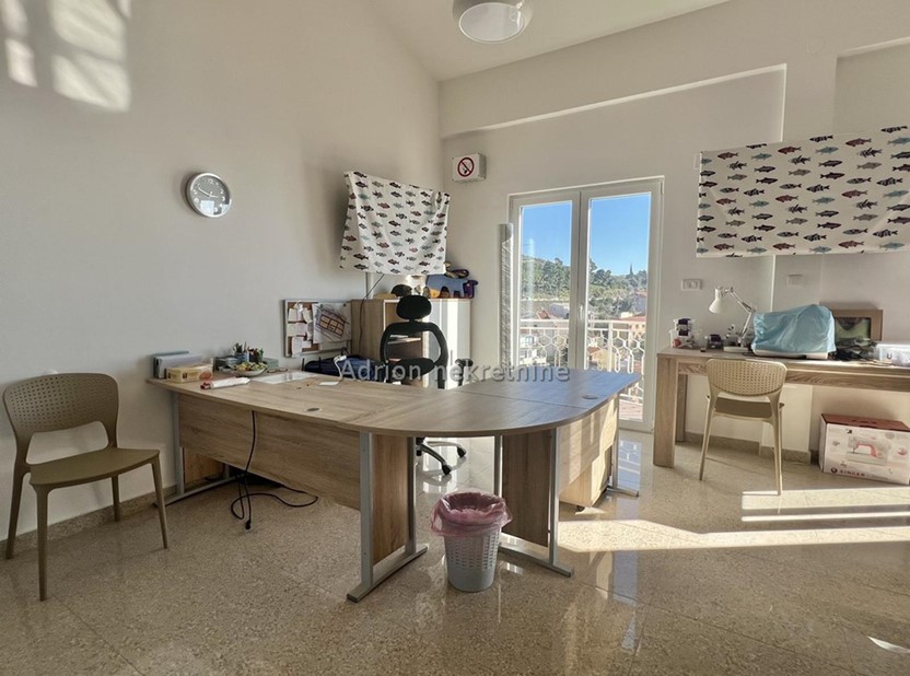 Prostor je u potpunosti novo uređen (instalacije, podovi, zidovi, rasvjeta…) i namješten je uredskim stolovima, konferencijskim stolovima, stolice, police, kauč, vješalice, dvije televizije, sa novo uređenom kupaonicom i kuhinjom.