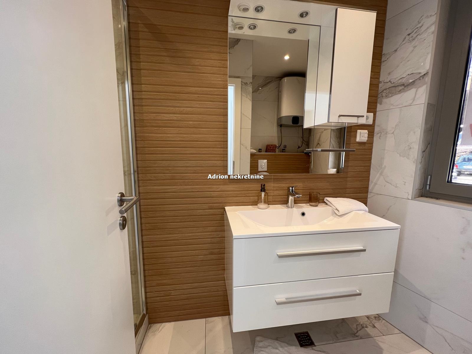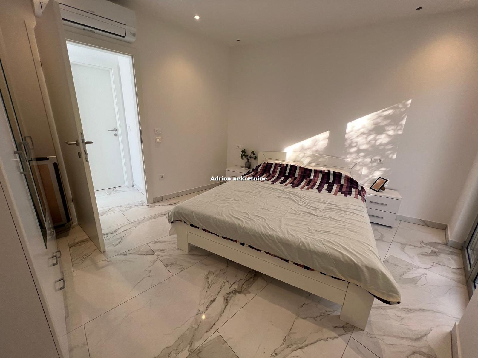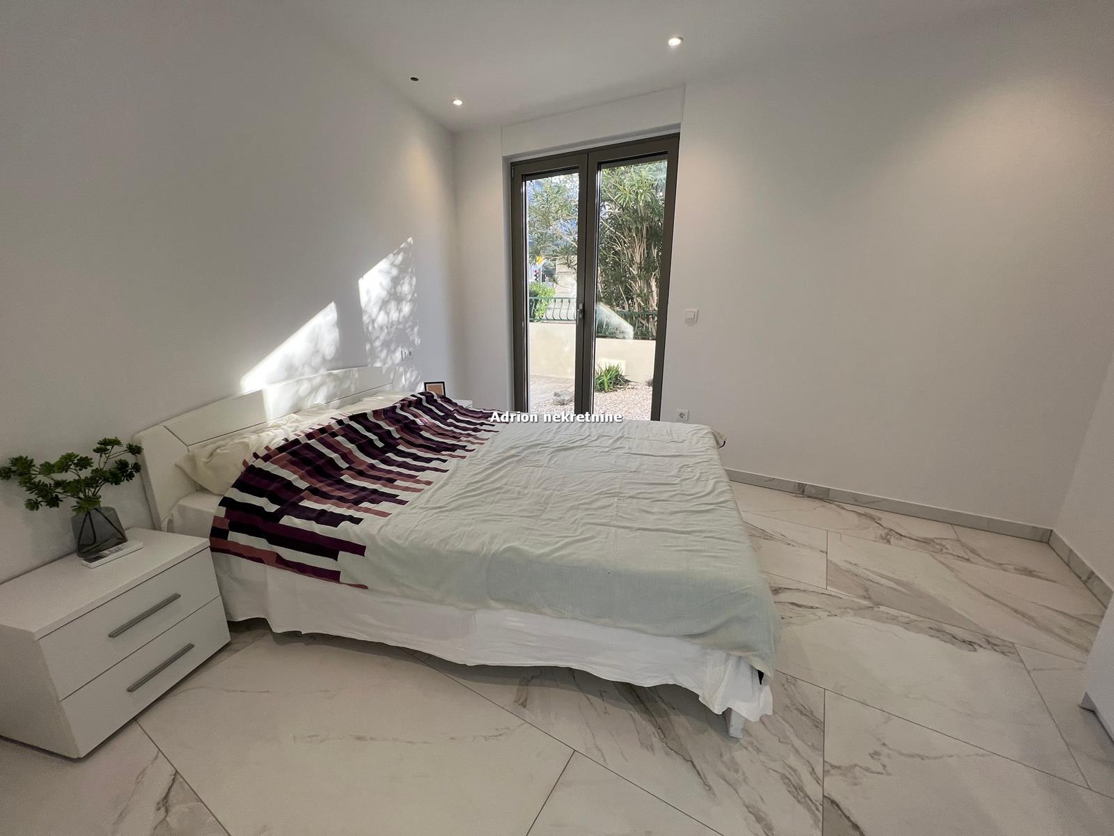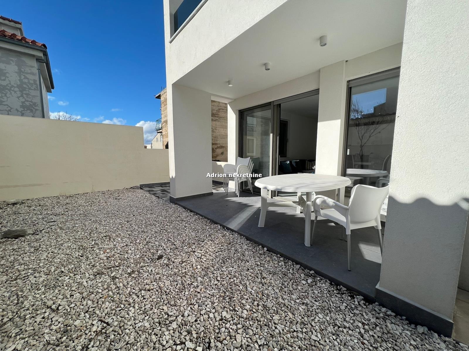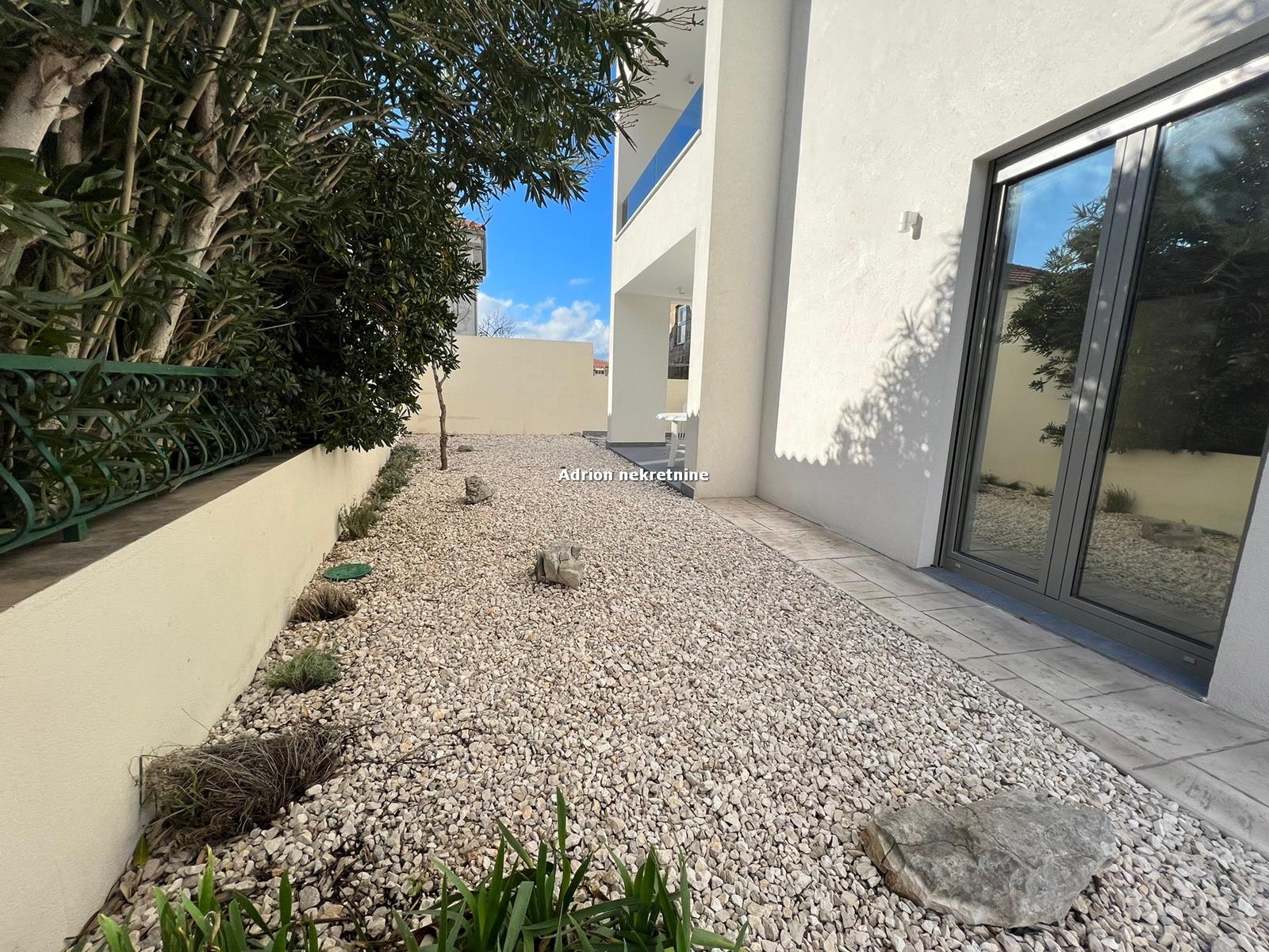 We ae selling a luxurious two bedroom apartment on the ground floor of a small urban villa. The building is located 300 meters from the sea. The apartment consists of two bedrooms, a bathroom, a storage room and a spacious living room. The area of the apartment is 74.40 m2, the apartment has a loggia of 7.50 m2 and a spacious garden of 49.90 m2.