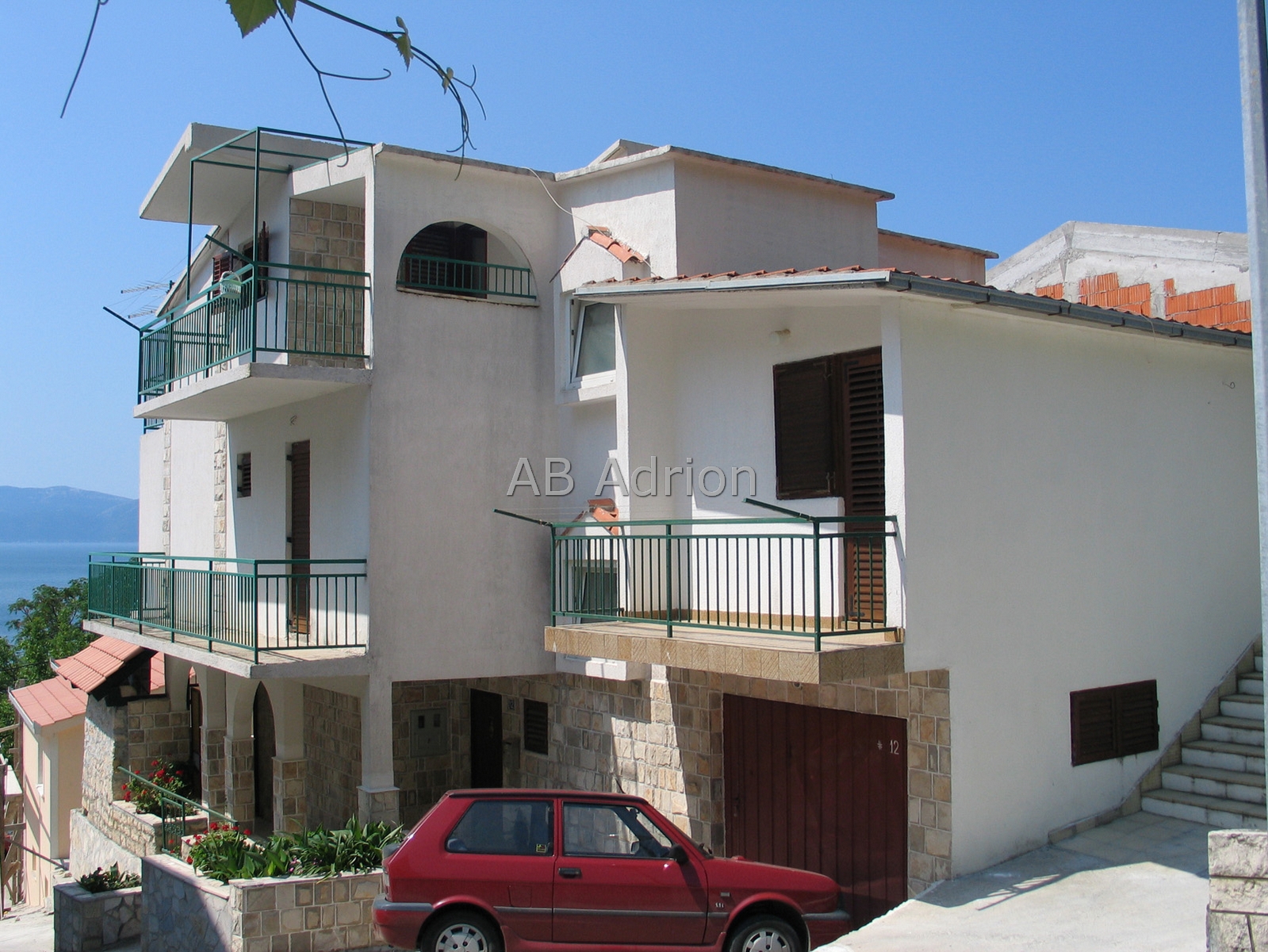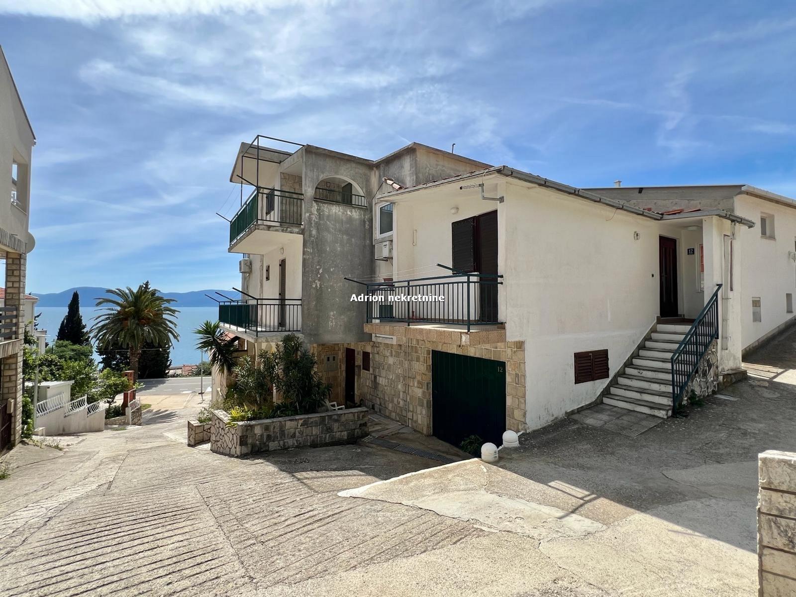 The house is located in Brist. It is located above the main road, about 150 m from the beach. It has 360 m2 on three floors. There are 5 suites, some of which are finished and some are in roh-bau performances. On the ground floor is a finished apartment of 90 m2 with large terrace and barbecue. On the first floor are two suites, one finished of 45 m2 and another unfinished 36 m2. On the second floor is an apartment of 85 m2 in roh-bau style. In addition, from the north side of the house is an upgraded apartment of 36 m2. The house has three more parking places.