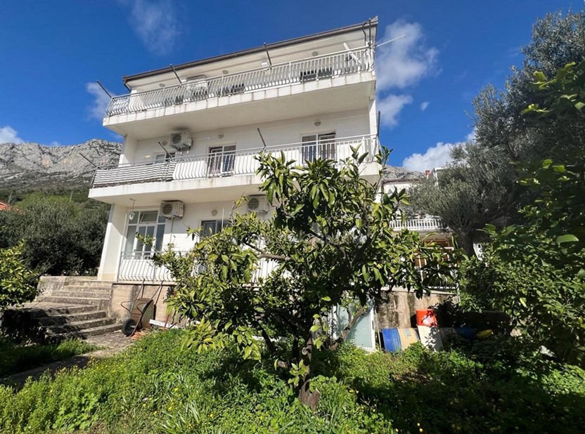 Detached house only 250 m from the beautiful pebble beach in the quiet town of Gradac, on the Makarska Riviera. The house is located on a plot of 639 m2. The height of the house is ground floor, 1st floor and 2nd floor ( high attic ), and in the back part of the house there are only two floors, ground floor and first floor.
