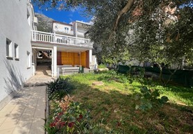 On the ground floor of the house is an apartment with three bedrooms ( two rooms facing the sea have access to the terrace ), two bathrooms, a storage room and a large kitchen with a dining room from which you can enter a covered terrace with a garden and a garden in the eastern and southern parts of the house.