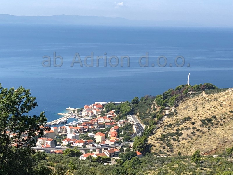 Two ruined stone houses for sale with building land of 1,030 m2 in the old Podgora. The houses are located at the foot of the building plot. The houses are reached via cascading laid building land that descends from the access road to the houses. At the bottom of the land in question are two dilapidated stone buildings. The first building has a floor area of 67 m2 in front of which is a courtyard of approximately 60 m2, and below is a second smaller house of a floor area of 34 m2 in front of which is a courtyard of approximately 50 m2.