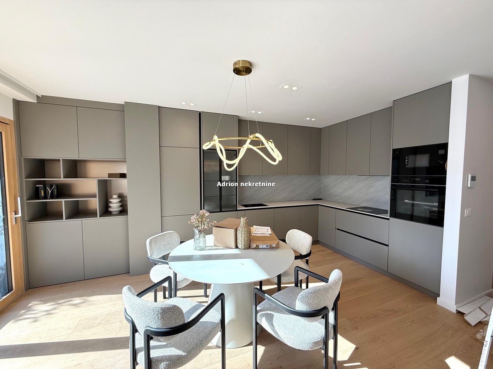 The highest quality construction! ( Insulation with 8 cm thick stone wool, additional insulation inside the apartments, large sliding walls with thermal insulating glass, "Blindo" fireproof entrance doors, and 1st class internal veneered doors, white color, LED lighting, all rooms air - conditioned, in the staircases Brač stone and stainless steel railing, in the bathrooms underfloor heating, high - quality ceramics, bathroom cabinets with a sink and hanging toilets with "soft - close" boards. Larger shower areas on the "walk - in" principle with glass shower cabins. )