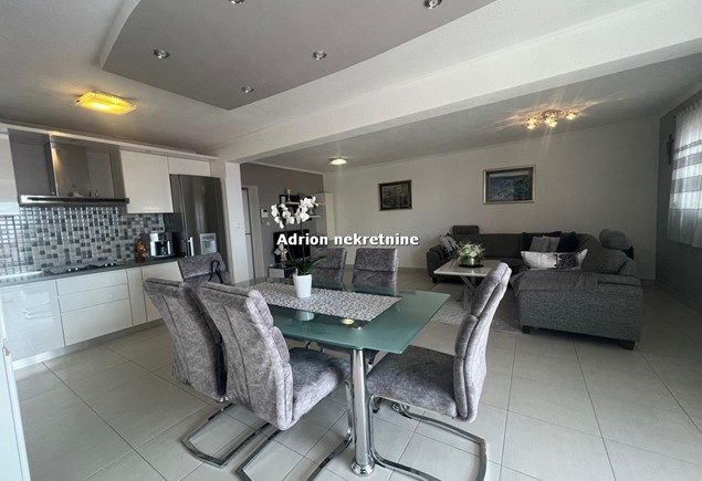 We are selling a spacious three-room apartment with a garage and a storage room in the western part of Makarska with a view of the sea. Apartment S2 is located on the second floor of the apartment house and has an area of 129.57 m2. The complete house is split-level and each floor has its own separate units. It consists of three bedrooms, a hallway, four bathrooms, three kitchens, a dining room, a living room and four balconies.