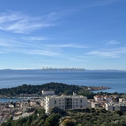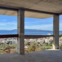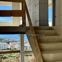 Three bedroom two - story apartment in a new building above the central part of Makarska. The apartment consists of a basement, ground floor and first floor. The staircase, home engine room, bathroom, fitness and storage occupy the basement. The area of the basement is 58.15 m2. On the ground floor of the residential unit there are storage rooms, kitchen, dining room, living room, bathroom, staircase, loggia and a covered terrace with a total area of 95.19 m2. The third part of the residential unit is occupied by a staircase, a corridor, three bedrooms, two bathrooms, a covered terrace and a balcony with a total area of 74.99 m2. The total net sales area is 228.33 m2.