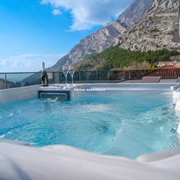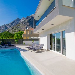 We offer a luxurious villa with a swimming pool located in Bast, near Baška Voda. A peaceful and pleasant environment will provide you with a perfect break from everyday life. There is a children's playground in the garden. Secured parking is located behind the villa. The villa has 3 bedrooms and bathrooms and 1 toilet. The rooms are luxuriously furnished and have air conditioning, a large TV and a balcony. The large kitchen is equipped with all necessary appliances (dishwasher, microwave oven, oven, refrigerator, wine cooler, coffee machine). There is a fireplace in the yard. A beautiful beach is 2 km away.