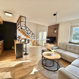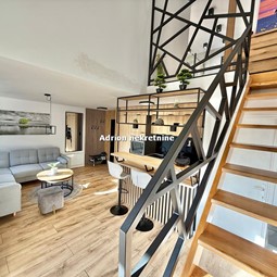 Potpuno renovirana garsonijera u visokom potkrovlju, ukupno korisne površine 26,53m2 + lođa 2,88m2 + galerija 29,03m2 + pripadak spremište sa 2,24m2. Bruo površina stana iznosi 60,68 m2.