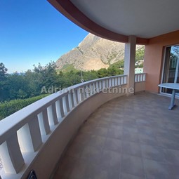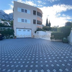 Prekrasna obiteljska kuća s dvije odvojena stambene jedinice s kultiviranom okućnicom na lijepoj lokaciji u Bastu koja nudi prekrasan pogled na more i planinu Biokovo. Površina kuće je 178 m2 , površina dvorišta je 528 m2 a ukupna površina parcele je 842 m2. kuća se sastoji od suterena, visokog prizemlja te 1. kata, također postoji mogućnost izgradnje 2. kata  odnosno potkrovlja temeljem pravomoćne građevinske dozvole, pripremljeni su i odvojeni satovi , plaćeni svi komunalni i vodni doprinosi, tj. Postoji dozvola za nadogradnju. U suterenu kuće se nalazi velika garaža, s tri dodatne prostorije koje služe kao radione, a u jednoj je velika peć na pelete koja je izvor centralnog grijanja. U visokom prizemlju je veliki trosoban stan , s prostranim dnevnim boravkom i kuhinjom.