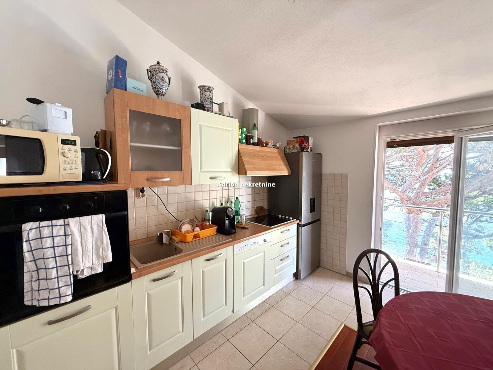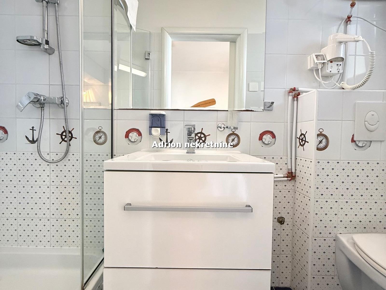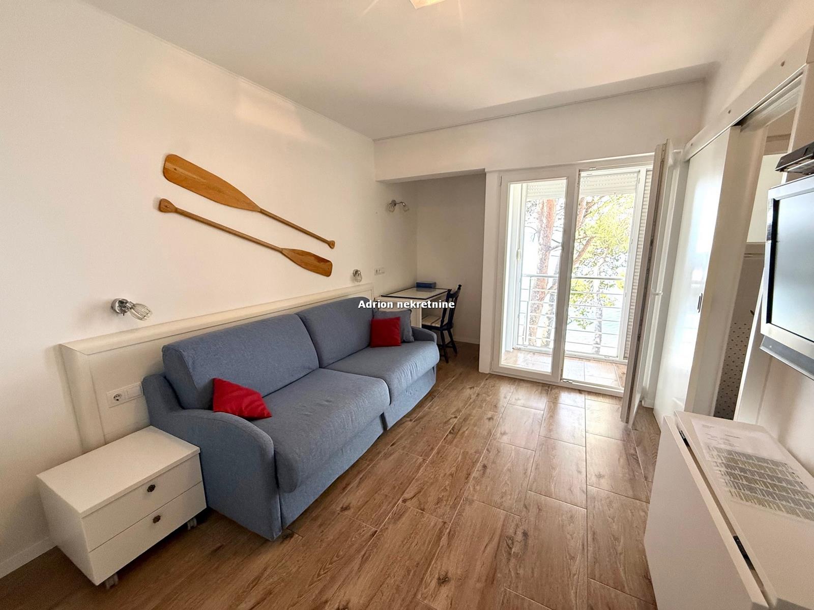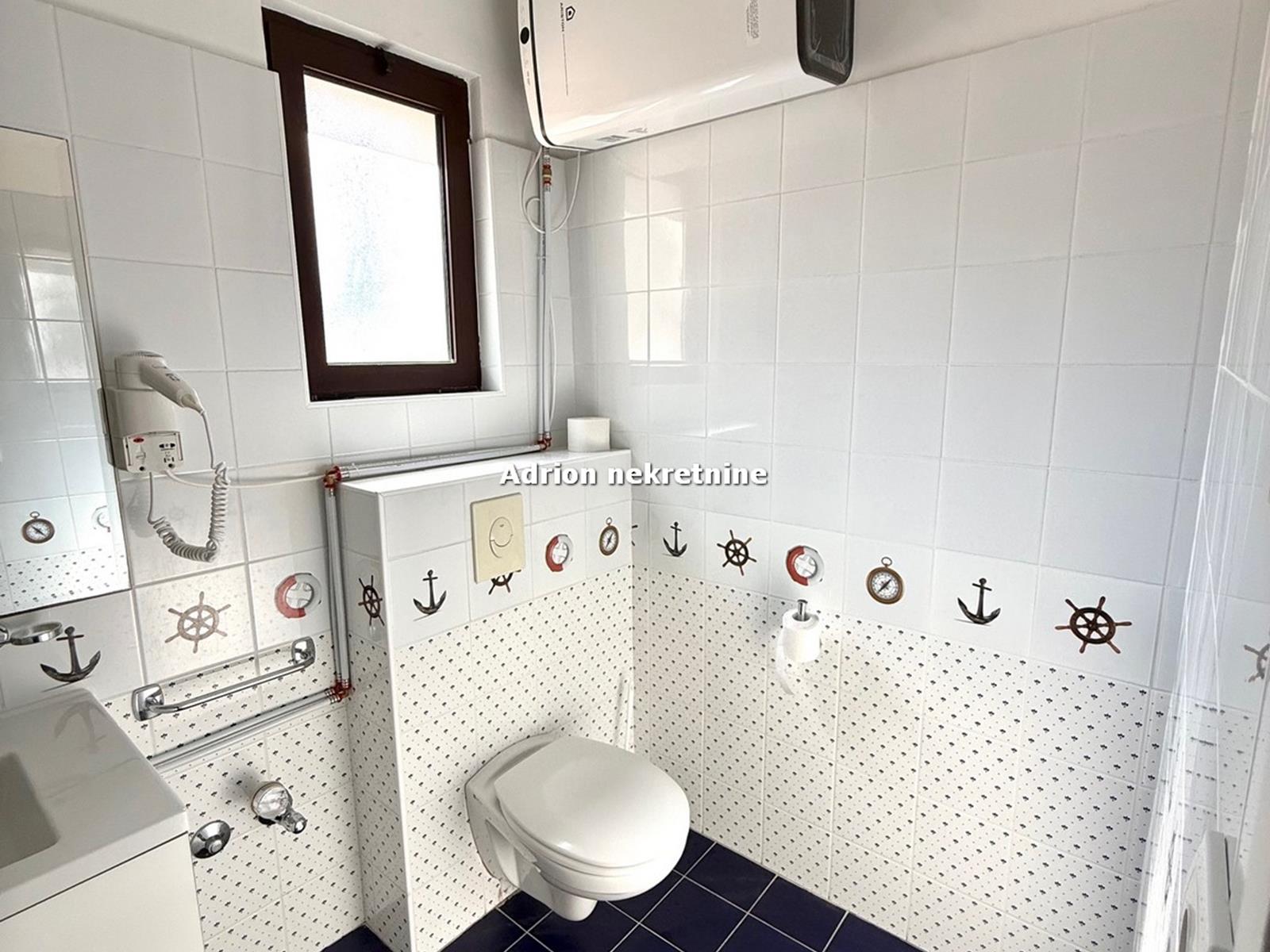 Hotel na Makarskoj rivijeri u prvom redu do mora. U naravi se radi o obiteljskom hotelu koji je smješten na samoj plaži u malom turističkom mjestu nedaleko od Makarske. Površina hotela iznosi 533 m2 na četiri nadzemne etaže, a ukupan kapacitet je 34 osobe. U prizemlju se nalazi potpuno opremljen restoran (34 sjedeća mjesta unutra) sa prostranom vanjskom terasom površine 100 m2 (60 sjedećih mjesta odmah do plaže), bar, kuhinja, recepcija, wc-i za goste, kupatilo za osoblje i spremište. Na prvom i drugom katu se nalazi 10 soba (dva i tri ležaja) sa kupatilima. Sobe su opremljene TV-om, internetom, klimom i malim balkonom. U sobama su pripremljene instalacije za ugradnju mini-blok kuhinje tako da se iste lako mogu transformirati u studio apartmane. Na trećem katu se nalaze dva apartmana. Apartman 1 od 40 m2, sastoji se od jedne spavaće sobe, kupatila, kuhinje s blagovaonom i dnevnim boravkom s kaminom, ukupno za smještaj 4 osobe. Kupatilo je opremljeno finskom saunom i masažnom kadom.Apartman 2 od 20 m2, sastoji se od jedne spavaće sobe, kupatila, kuhinje s blagovaonom i dnevnim boravkom, ukupno smještaj za 3 osobe. Kupatilo je opremljeno masažnom tuš kabinom sa turskom saunom. Iz apartmana 2 je izlaz na veliku krovnu terasu sa roštiljem. Hotel je potpuno renoviran 2014. godine u mediteranskom stilu, kompletno je opremljen i namješten, klimatiziran sa provedenim centralnim grijanjem kroz cijeli objekat te se takav i prodaje. Cijeli objekat je južno orijentiran te se iz svakog kutka kuće pruža pogled na more, otoke i prekrasnu šljunčanu plažu ispred hotela. Parking je osiguran za sve goste hotela. Sama lokacija ovog hotela je idealna je za investiranje u turističku djelatnost.
