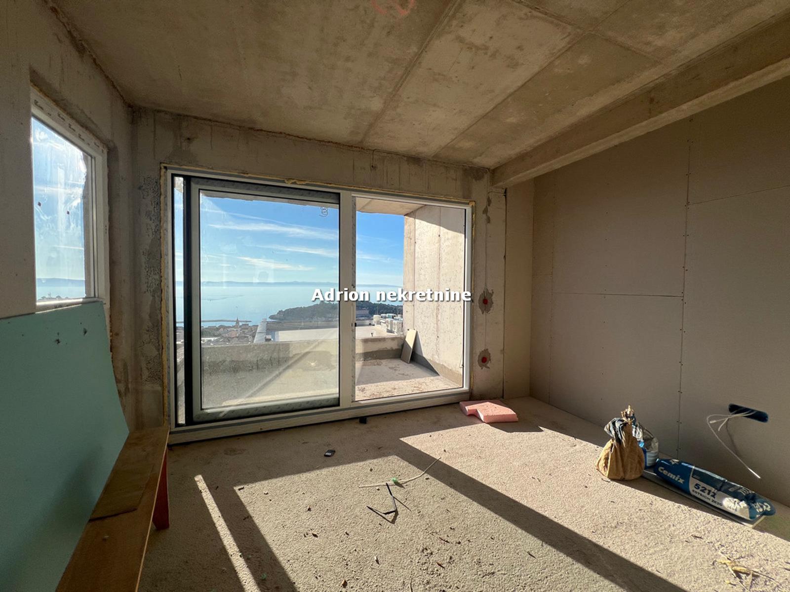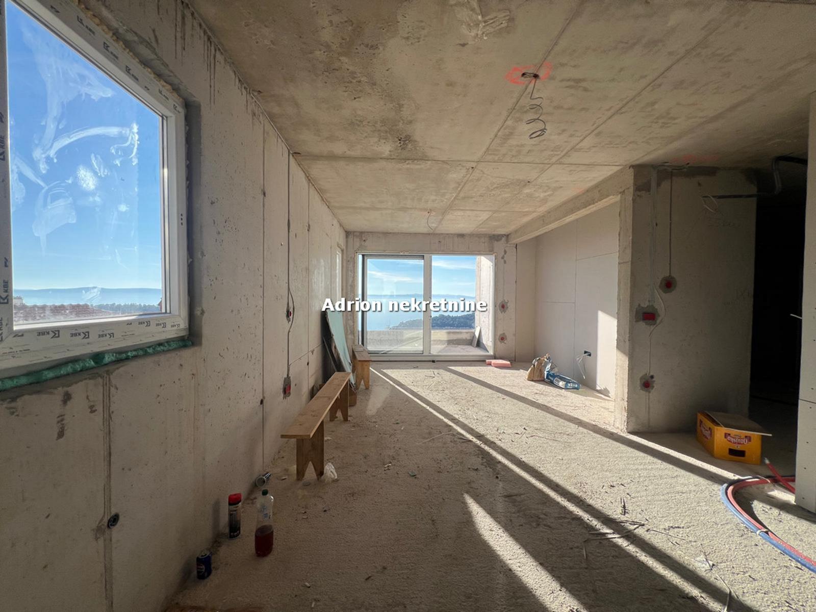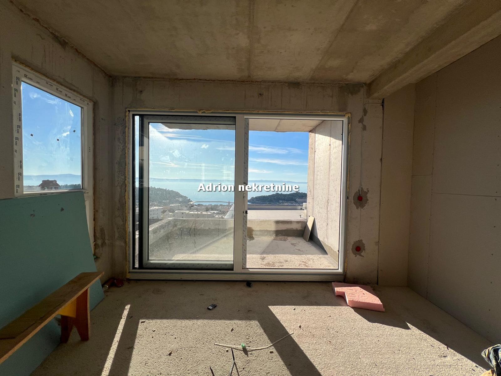 Atraktivan trosobni stan s parkingom i spremom iznad centra Makarska. Stan se nalazi u novogradnji koja je uskoro gotova. Površine 103m2 te se nalazi na 1. katu urbane vile novije gradnje. Stanu pripada parking mjesto ispred zgrade te ostava 9,60 m2 .