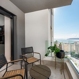 Stan s vanjskim parkingom u centru Makarske površine 72,59 m2 sastoji se od dvije spavaće sobe, kupaonice, hodnika, lođe, dnevnog boravka, kuhinje s blagovaonicom i balkona. Stan se nalazi u prizemlju stambene zgrade s liftom. Zgrada se sastoji od podruma koji ima dvije etaže (-1 i -2 u kojima se nalaze garažna parking mjesta), visokog prizemlja i 4 kata. Zgrada ima ukupno 40 stambenih jedinica i dva ulaza s dizalima. Na svakom katu su 4 stana. Najkvalitetnija izgradnja! Izolacija s kamenom vunom debljine 8 cm, a unutar stanova dodatna izolacija, podizno klizne stijenke velikih dimenzija s termo izolacijskim staklima, ulazna vrata sigurnosna „Blindo“ protupožarna i protuprovalna, a unutarnja furnirana vrata 1. klase, bijele boje, led rasvjeta, sve sobe klimatizirane, u stubištima brački kamen i inox ograda, u kupaonicama podno grijanje, visoko kvalitetna keramika, kvalitetni kupaonski ormarići s umivaonikom i viseće wc školjke sa „soft-close“ daskama. Prostori tuševa na „walk-in“ principu te staklene tuš kabine.