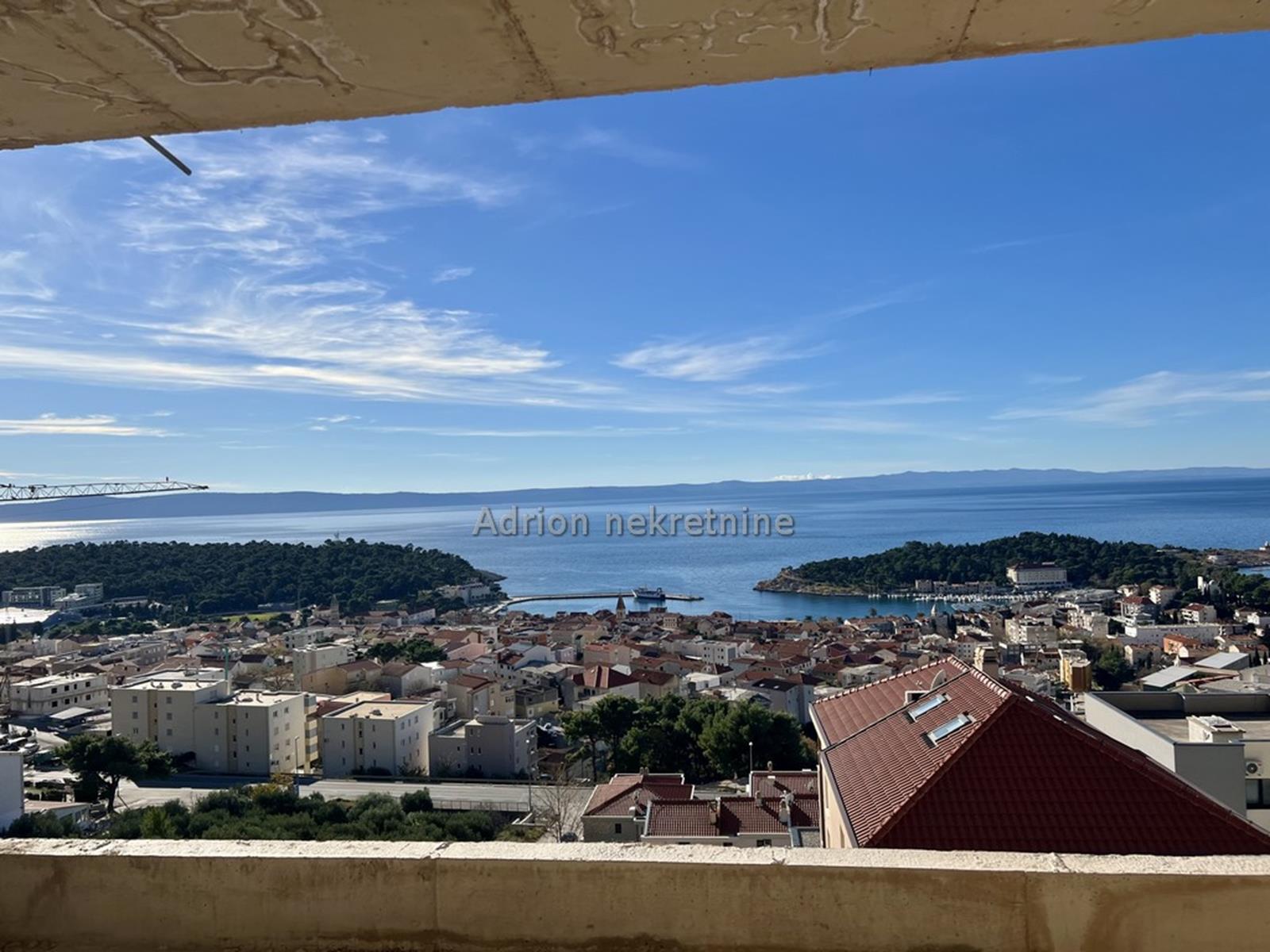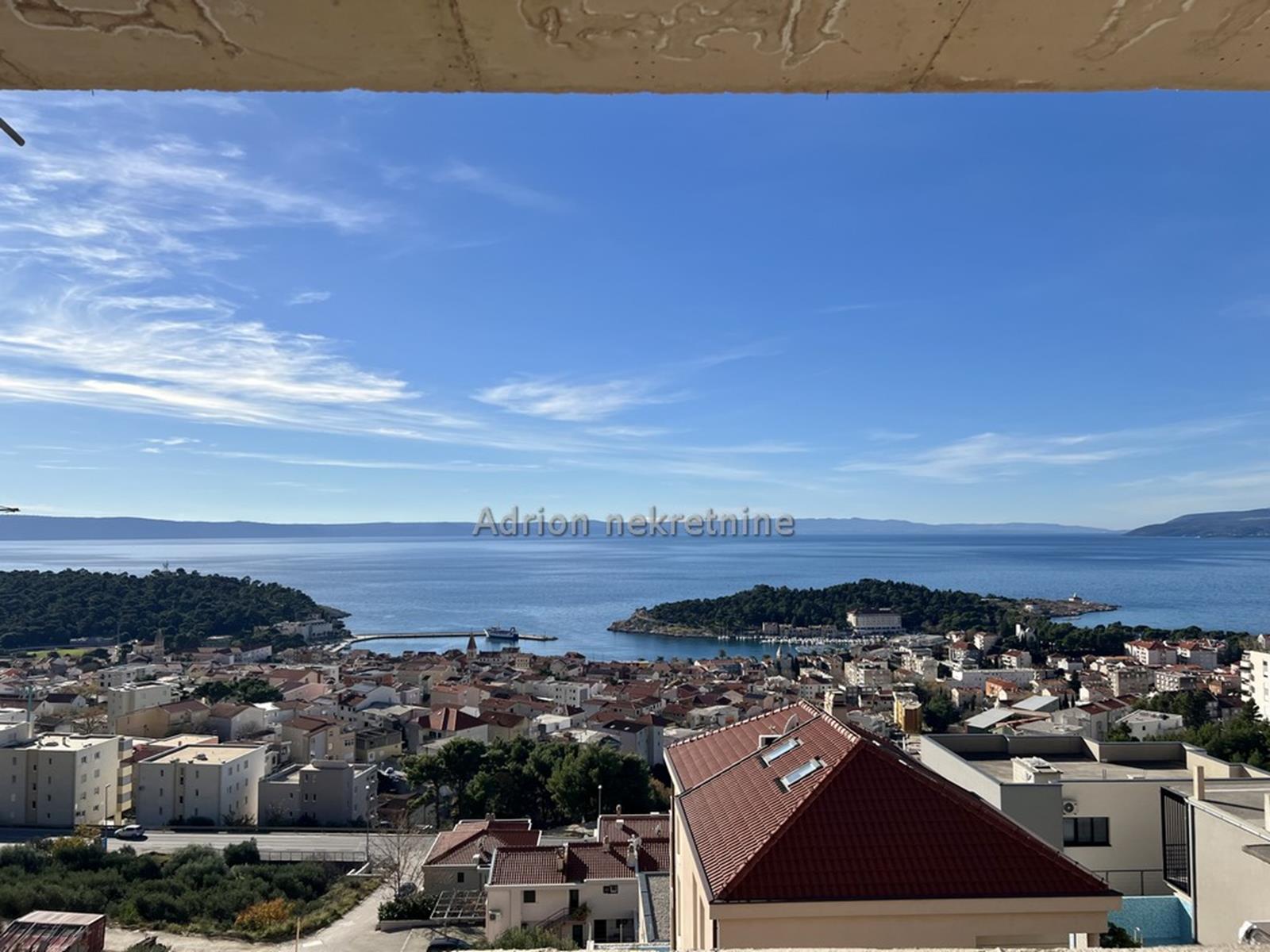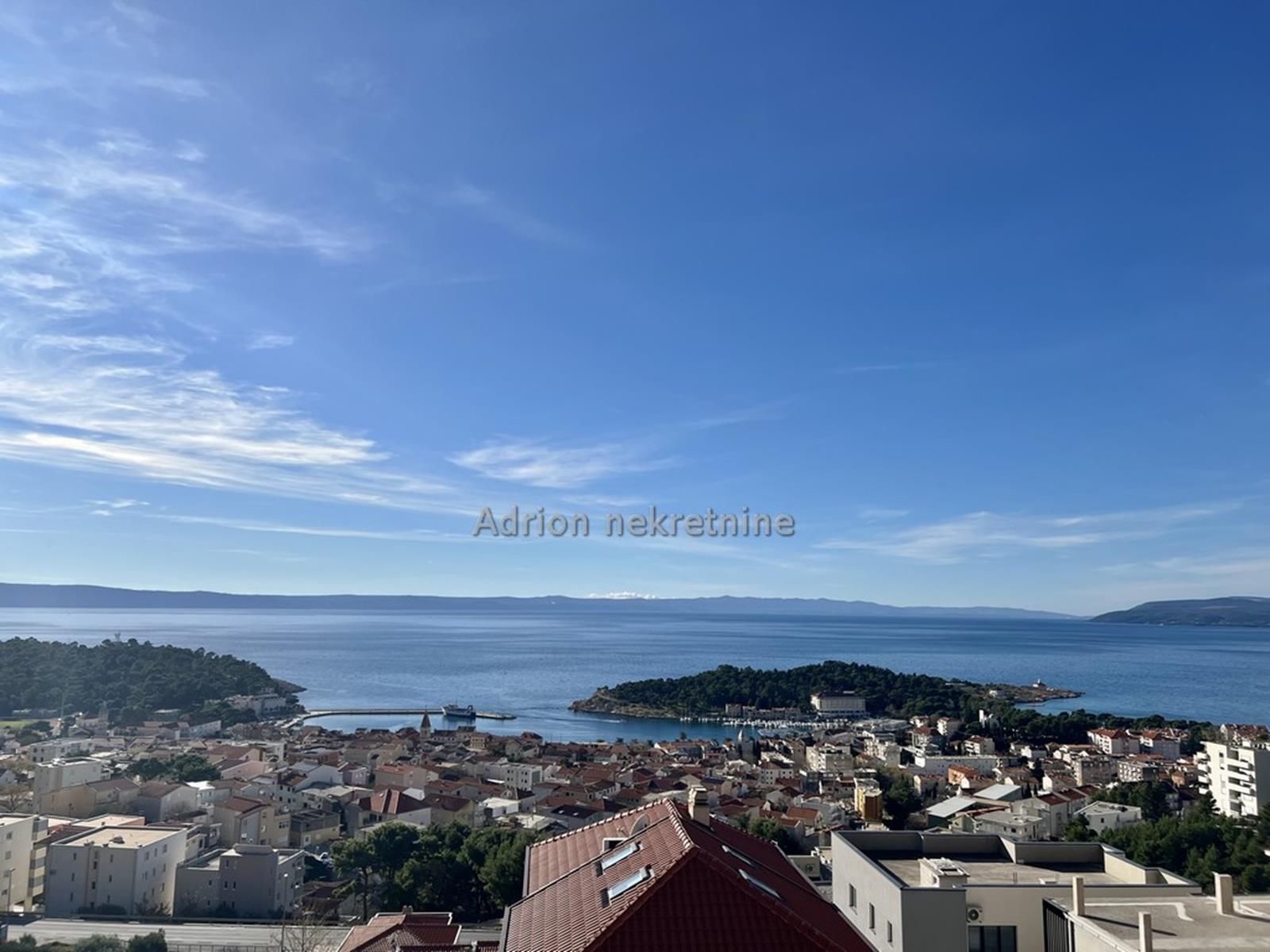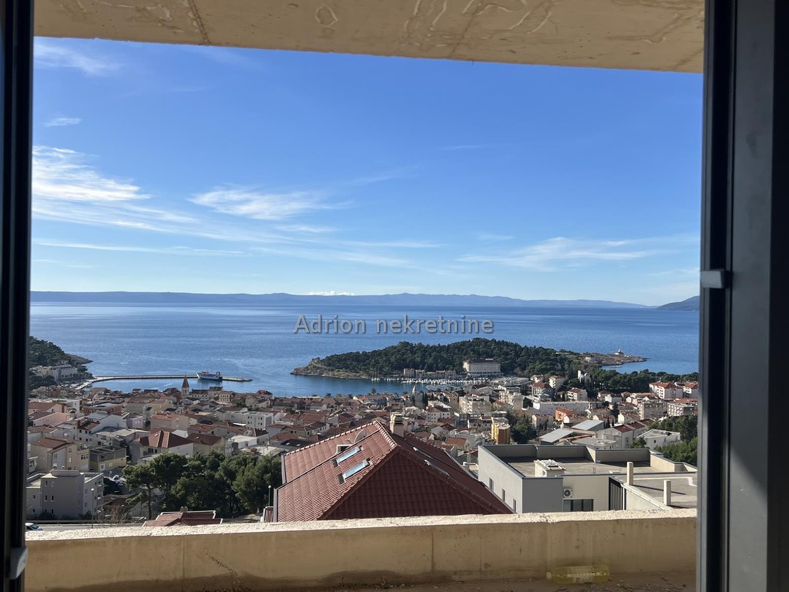 Komforni trosobni stan u Makarskoj, iznad centra grada sa fantastičnim pogledom na more. Stan zauzima cijelu etažu zgrade, ukupne površine 145,16 m2. Smješten je na 2. katu nove zgrade sa garažama.