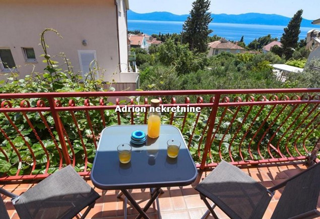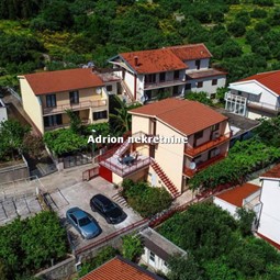 Kuća ima garažu i uređen parking za 5 auta. U prizemlju kuće nalazi se dvosoban stan površine 65 m2 stambenog prostora. Na prvom katu  također se nalazi stan od 65 m2 s velikim balkonima i velikom južno orijentiranom terasom koja ima prekrasan pogled na more. Na drugom katu je trosoban stan od 65 m2 i velikim balkonima s pogledom na more. Ispod parkinga nalazi se prostorija za fitness centar od 40 m2 stambenog prostor gdje se može izgraditi i bazen.