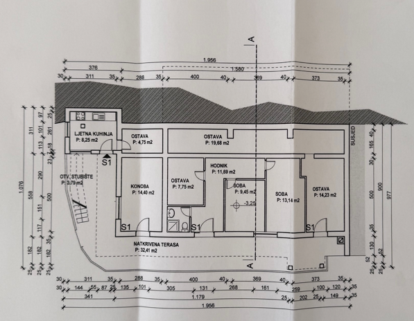 Veličina: kuća 545 + parking 211 m2