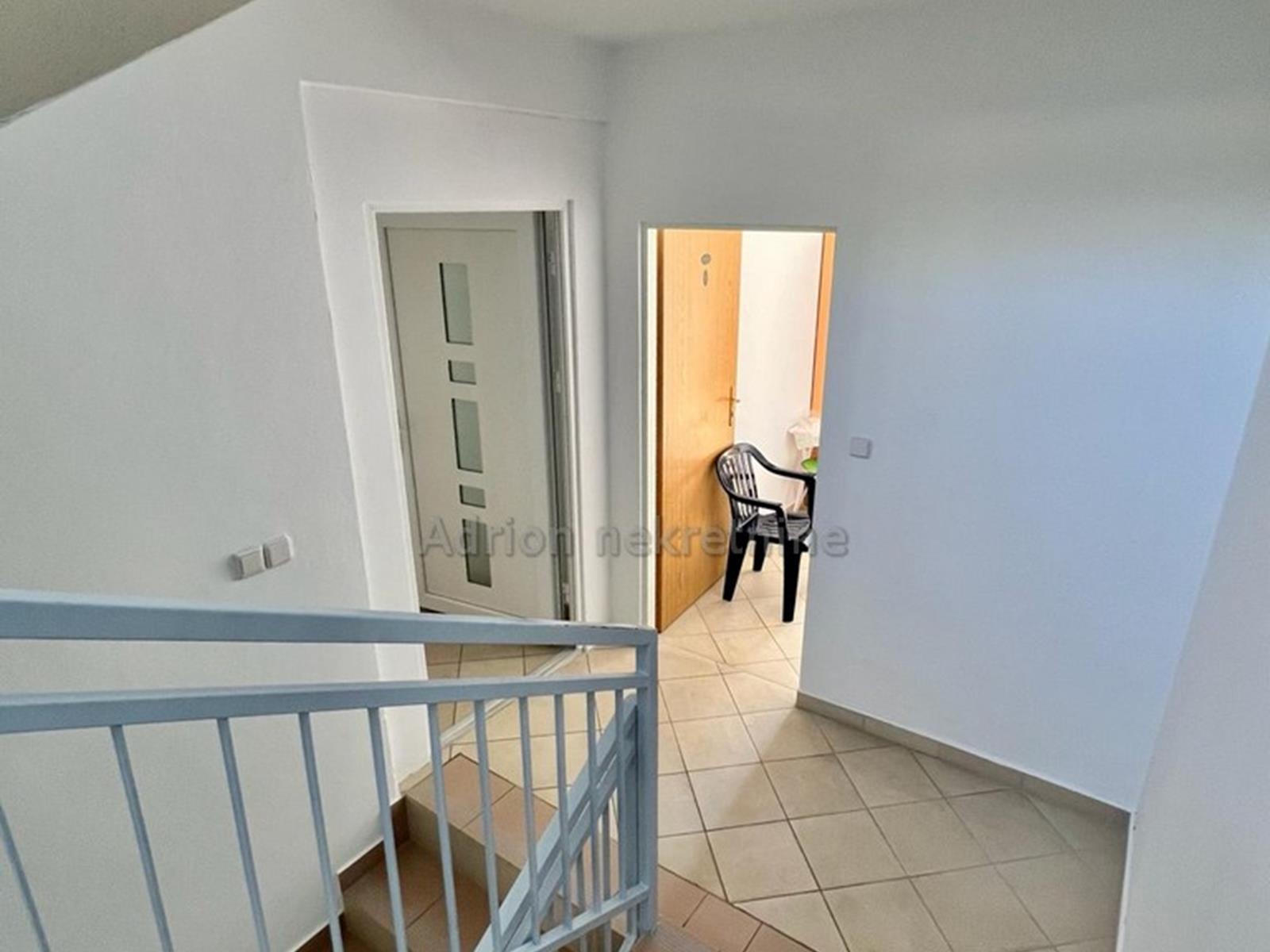 Na 2. katu je stan s ukupno 4 sobe ( tri sobe imaju izlaz na balkon prema moru ), hodnik, dvije kupaonice i kuhinja sa blagovaonicom.