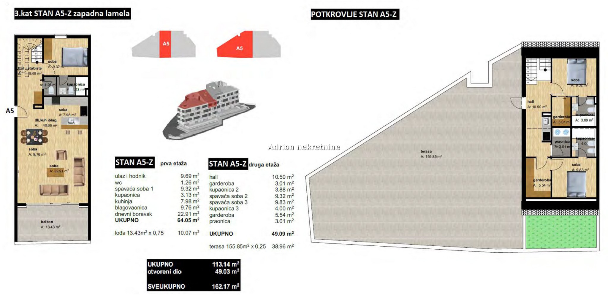 A5 - Zapadna lamela = 750.000 € ( Penthouse, dvoetažni ) 3. Kat