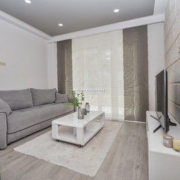 U samom centru grada Makarske u novijoj stambenoj zgradi prodajemo potpuno namješten dvosoban stan.